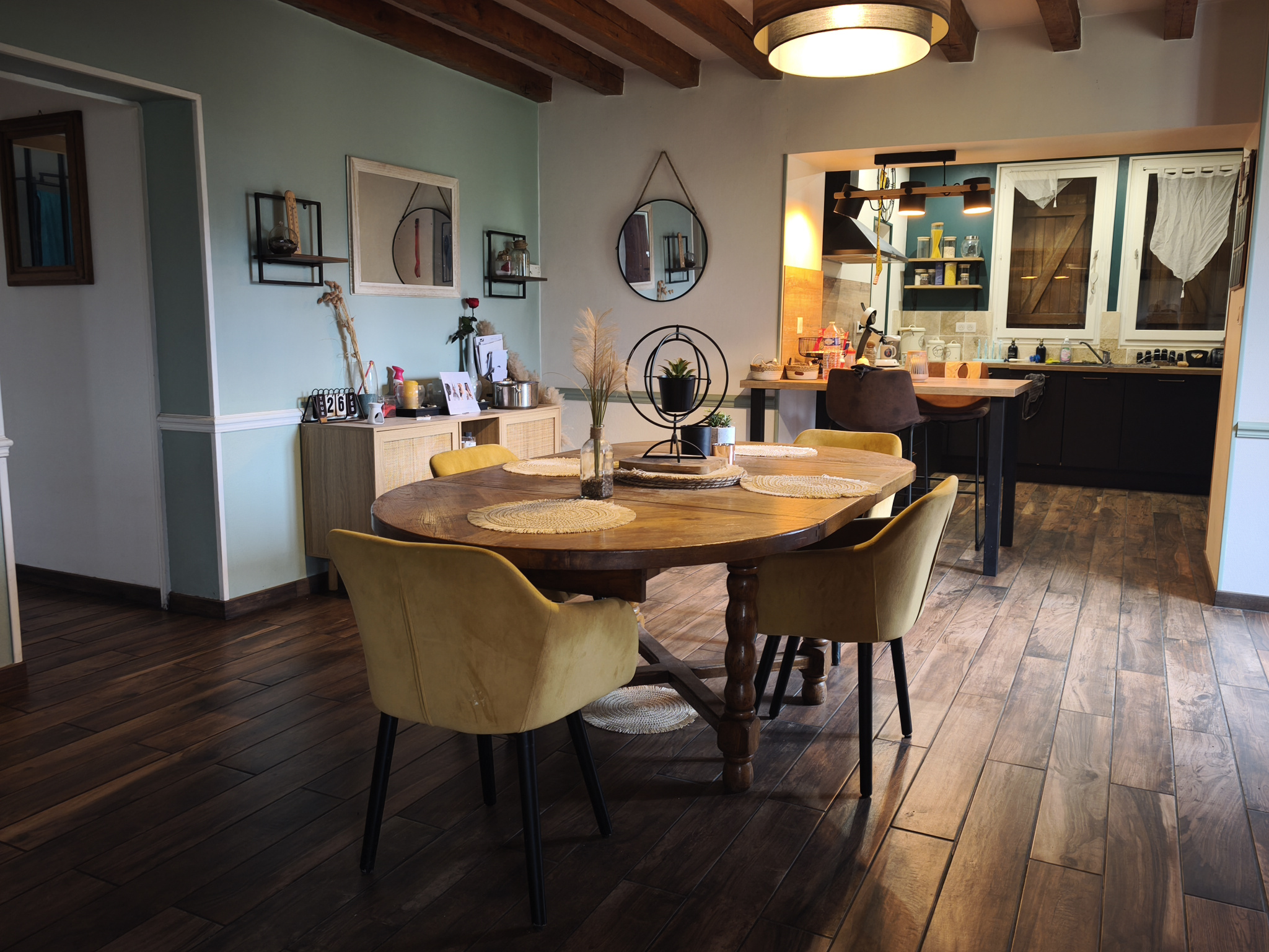Située dans un environnement calme et verdoyant, cette belle maison d'environ 112 m2 saura séduire les amateurs d'espace et de tranquillité. Au rez-de-chaussée, vous découvrirez :