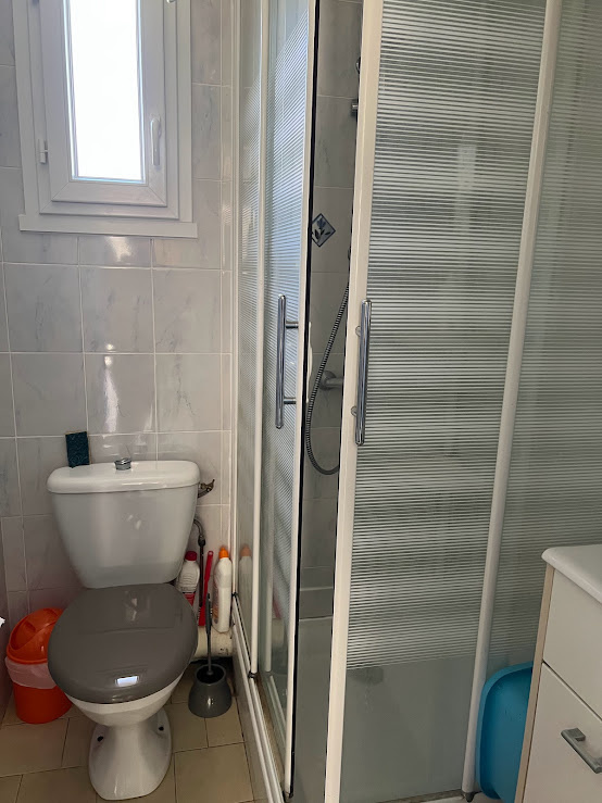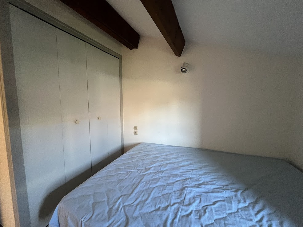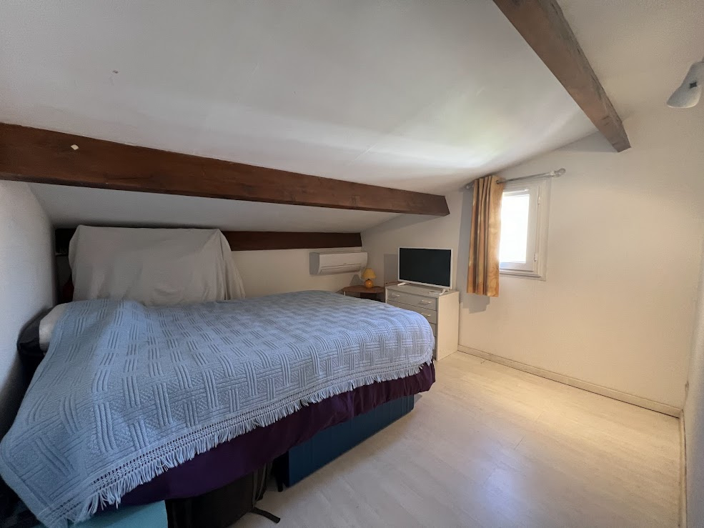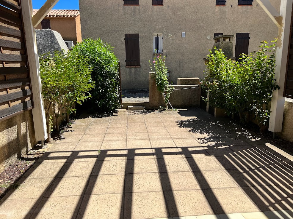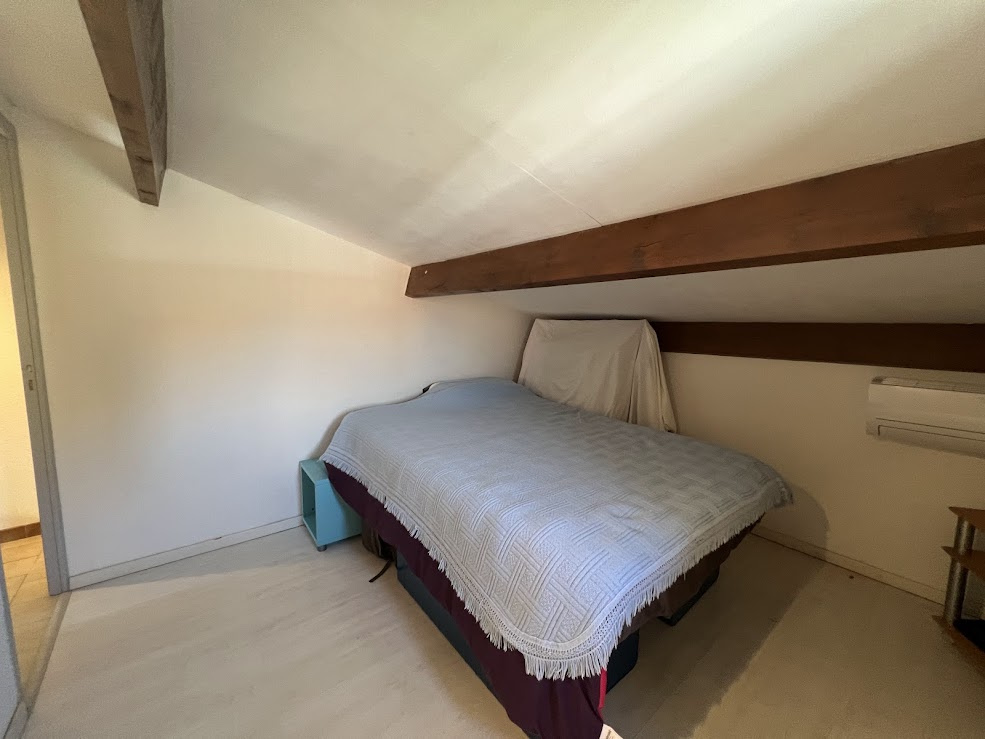 St Pierre la Mer, dans une résidence proche de la plage, pavillon composé d'un séjour avec coin cuisine tout équipé, placards, salle d'eau avec douche et wc et à l'étage une grande chambre mansardée avec fenêtre (dont 5.5m2 hors carrez), une chambre cabine fermée avec fenêtre, et une 3 ème chambre avec placard climatisation