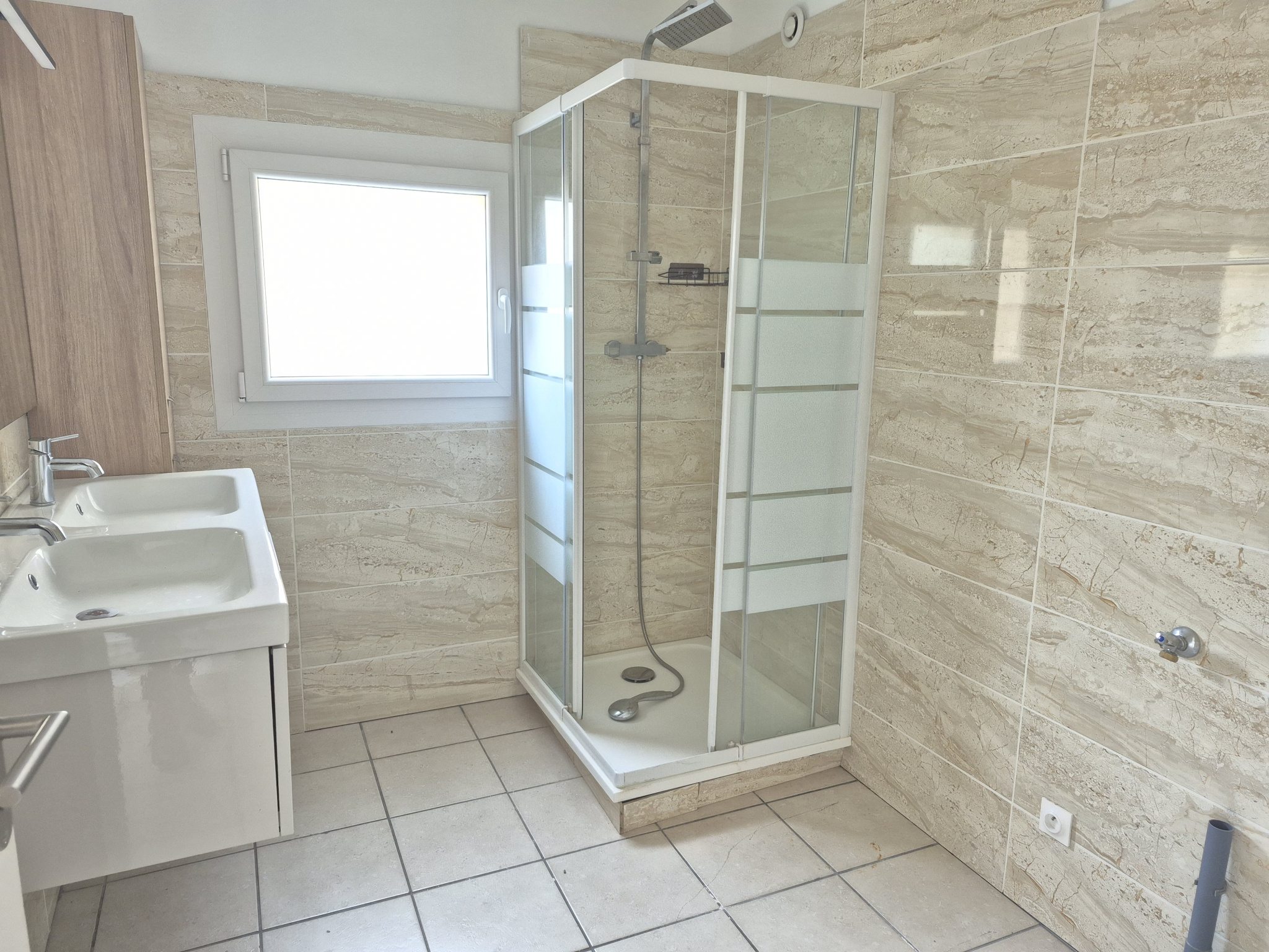 A l'étage un palier mezzanine,deux belles chambres,une salle de bain et douches
