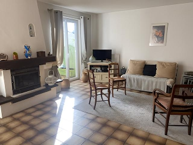 Plain pied de 95m2 comprenanr une entrée avec placard, un séjour salon avec cheminée de 37m2 donnant sur jardin, 2 chambres spaicueses de 14 et 15m2, une salle d'eau et un garage. Un jardin de 460m2.