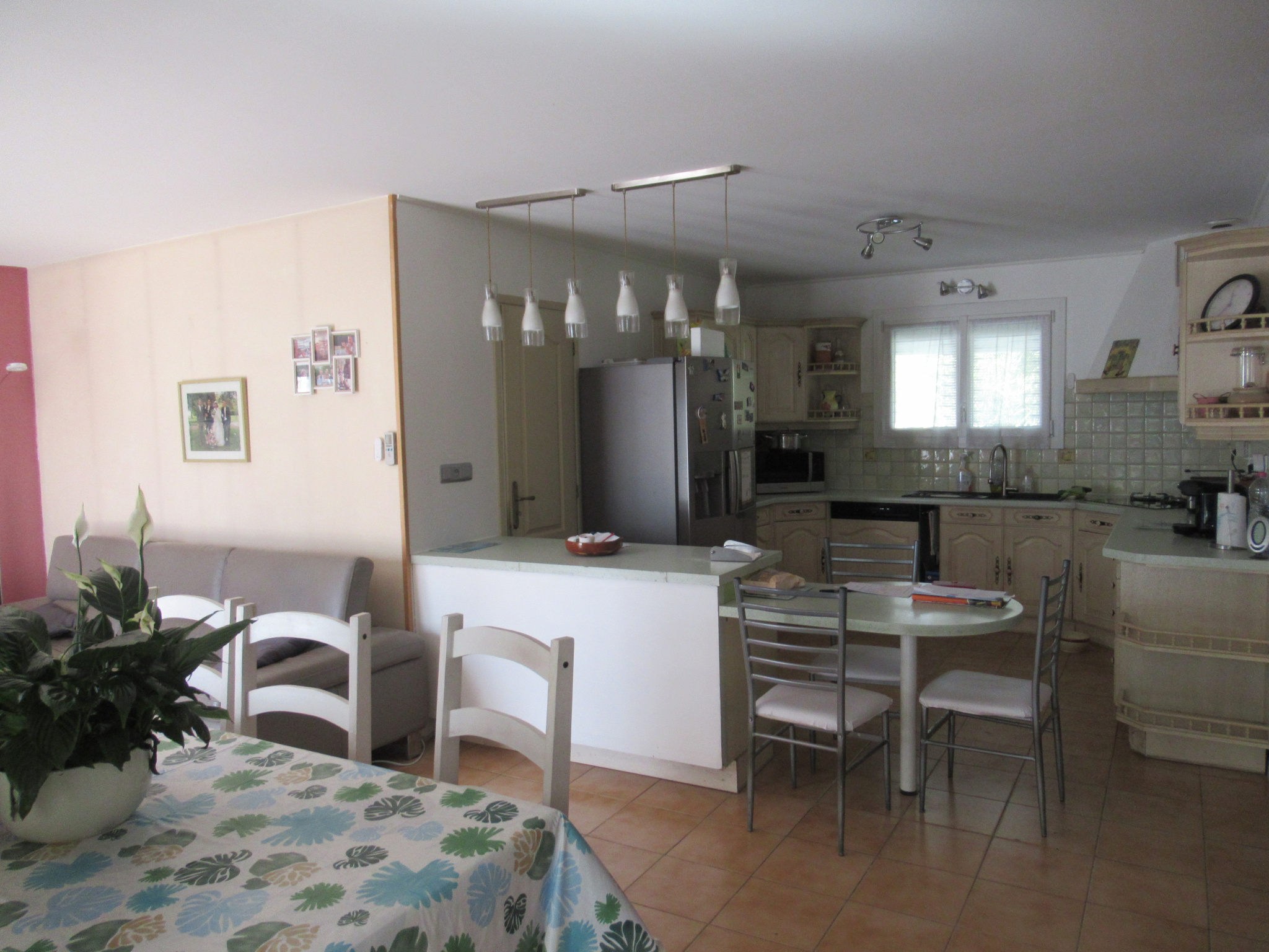La Salvetat St Gilles Villa plain pied type 4/5 de 104 m2 se composant: Entrée; Cuisine Américaine aménagée et équipée ( plaque induction, hotte, four) avec ilôt central; Séjour avec poele à bois et climatisation; Dégagement; Trois chambres; Salle d'eau; Toilettes; chauffage individuel électrique; Grande véranda avec chauffage donnant sur jardin; Double vitrage; Garage; Abri jardin; Panneaux solaires ( revente totale ); Parcelle de 644m2.