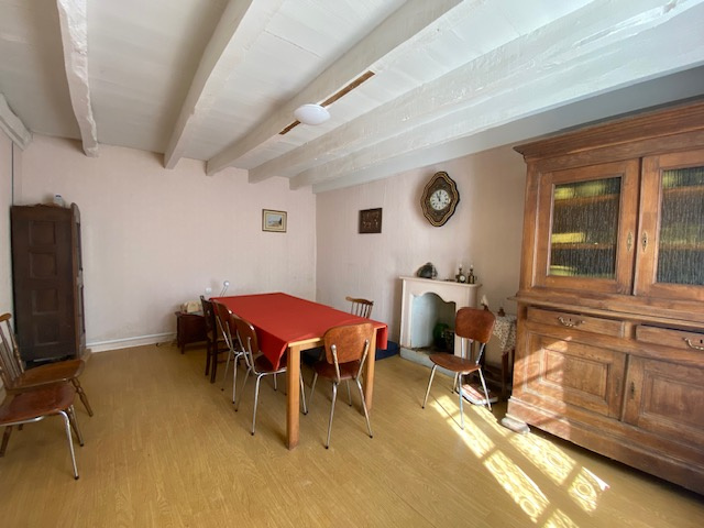 - grenier aménageable au-dessus (35 m2) ; Garage attenant construit en parpaings et couvert en tôles fibrociment avec chaufferie (52 m2) ; Cour avec puits. L'ensemble sur un terrain de 252 + possibilité d'un autre terrain non attenant d'une contenance totale de 7a 91ca dont une partie constructible environ 4a 75ca avec cabanon de jardin.