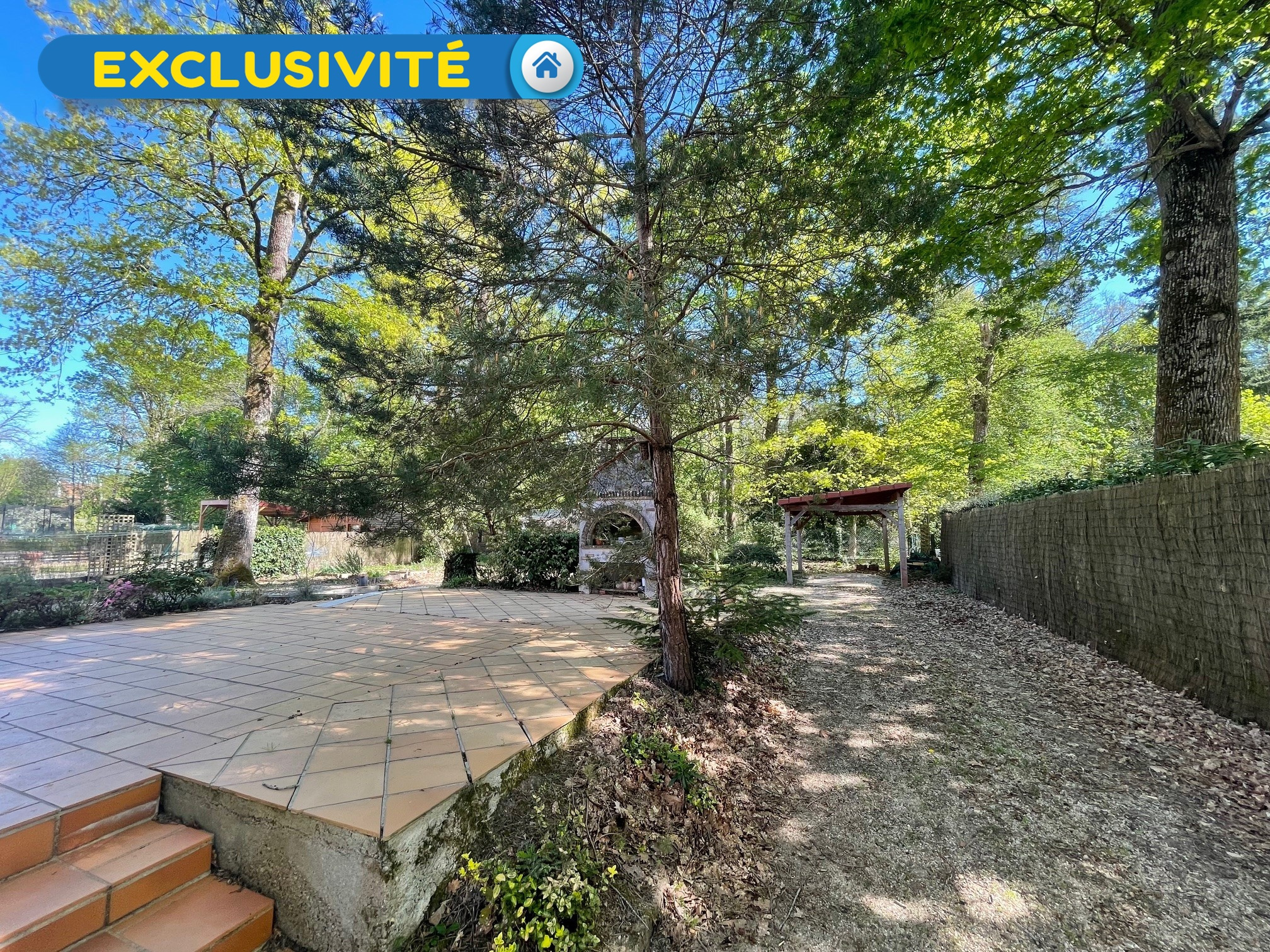 L'ensemble est implanté sur un terrain d'environ 800 m2, agrémenté d'une grande terrasse exposée plein sud avec vue sur le parc du Château, d'un barbecue en dur, d'un carport et d'un abri de jardin en PVC.