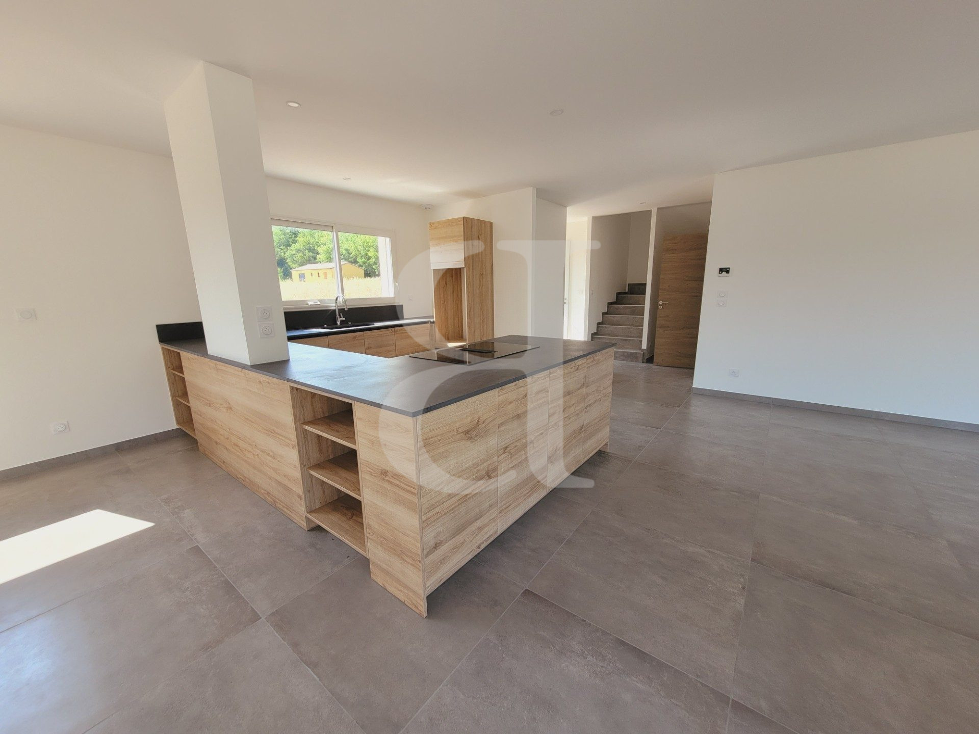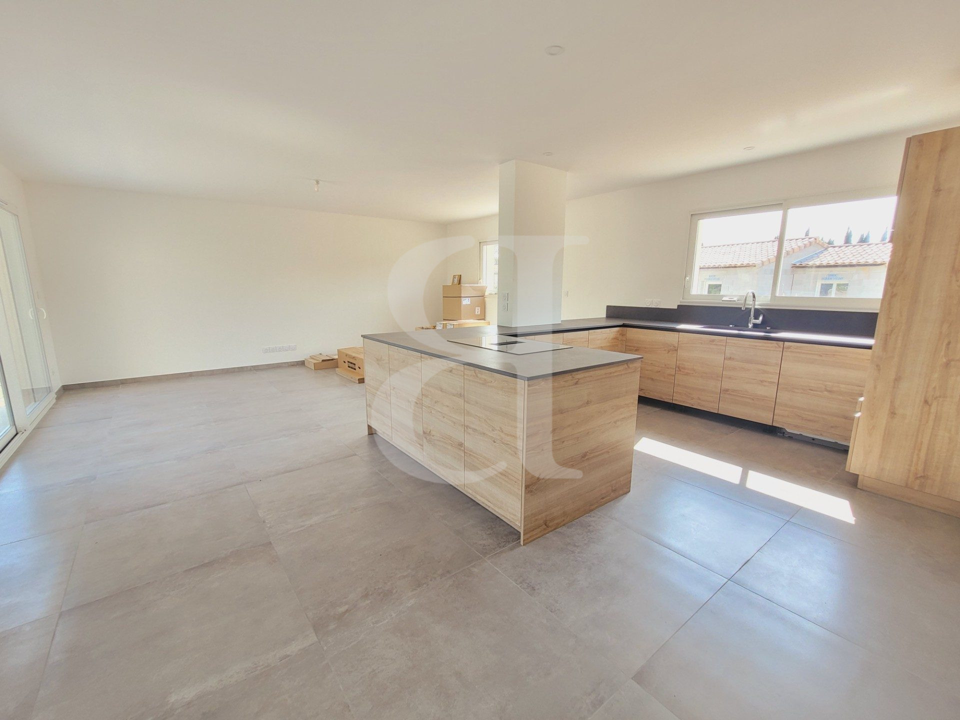 Pièce à vivre de 67,38 m² avec cuisine équipée ouverte sur salle à manger et séjour