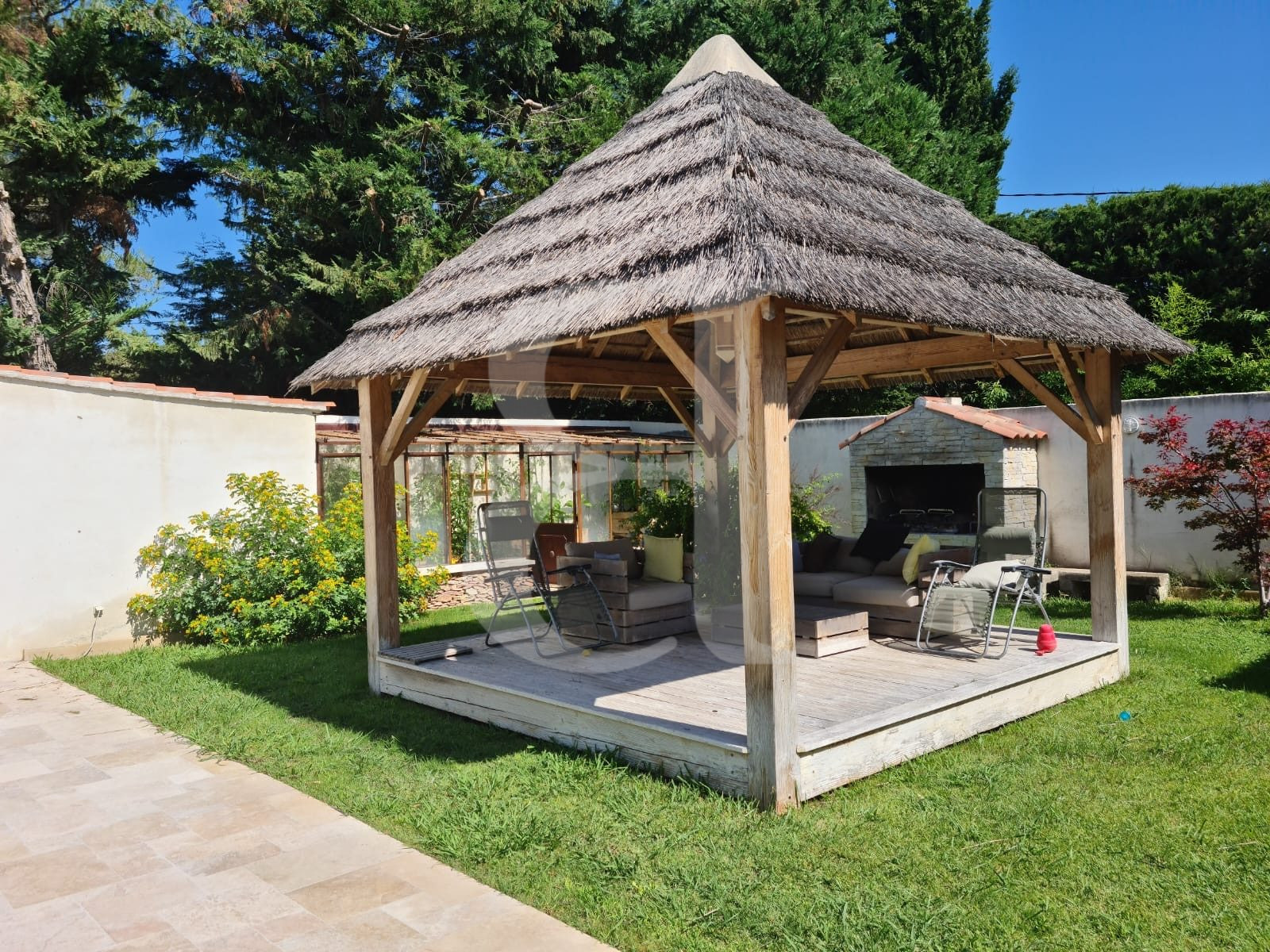À l'extérieur, vous profiterez d'un joli jardin arboré de plus de 4 000 m², agrémenté d'une oliveraie, d'une piscine avec pool house, de terrasses couvertes idéales pour les repas d'été, ainsi que d'un espace potager.
