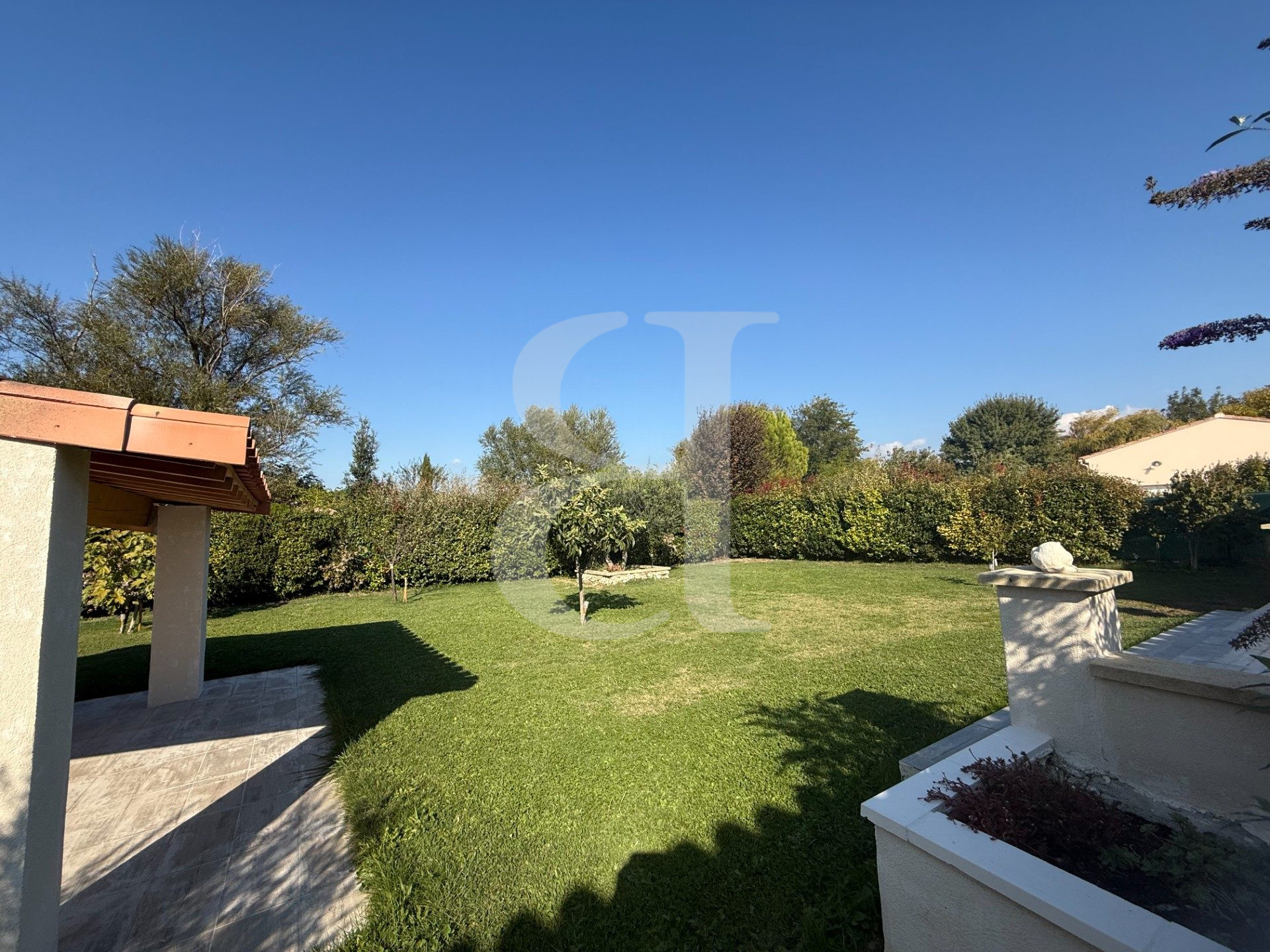 Dans un secteur résidentiel, au calme et proche des commodités de la ville, villa de plain pied construite en 2013 sur son jardin de 830 m² joliment arboré.