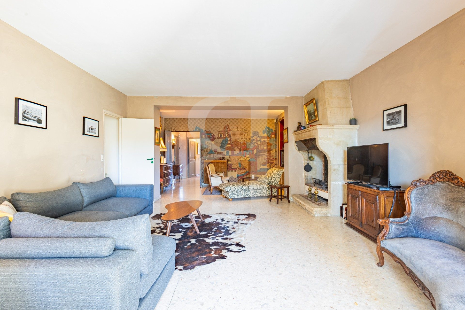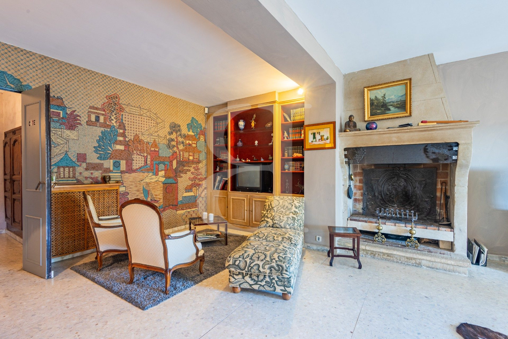 Séjour avec cheminée 40 m²