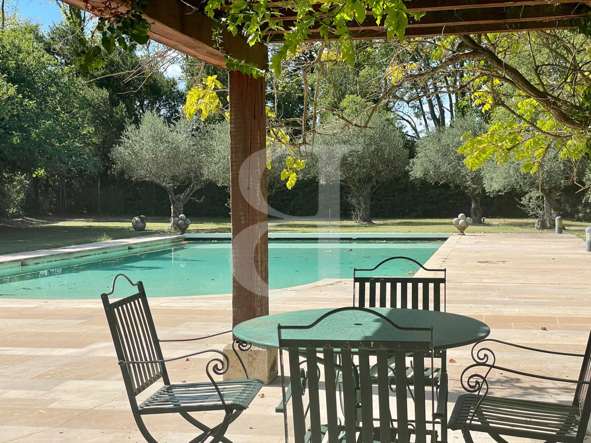 La propriété se compose d'une maison principale d'une surface d'environ 530 m² avec en Rez-de-Chaussée,1 salle de bains, sa salle de sport pouvant se transformer en chambre, à l'étage 6 chambres, 6 salles de bains et la maison de gardien d'environ 115 m² avec 3 chambres. L'ensemble se déploie sur un parc de plus de 2 hectares où se mélangent oliviers, platanes et essences provençales.