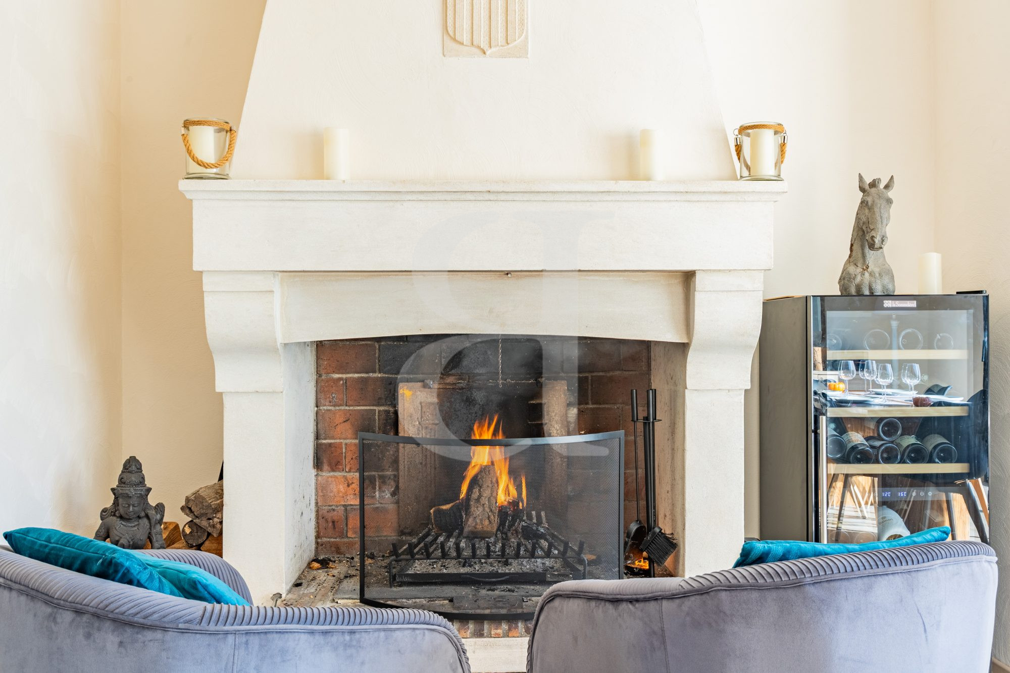 Séjour avec cheminée 33 m²