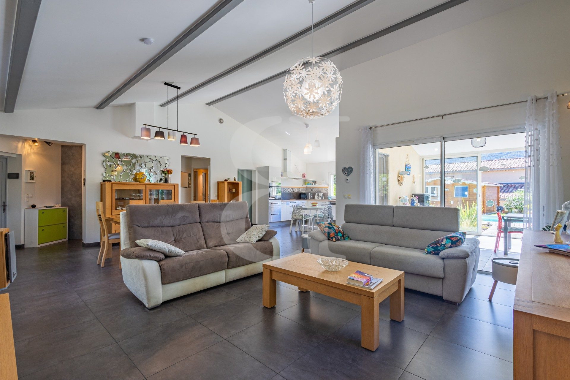 D'une surface habitable d'environ 150 m², cette maison de plain-pied se distingue par la qualité de sa construction et l'harmonie de ses espaces. Elle se compose d'une pièce de vie spacieuse et lumineuse, comprenant un salon/séjour ouvert sur une cuisine équipée, avec accès direct à une superbe véranda, véritable pièce supplémentaire utilisable toute l'année.