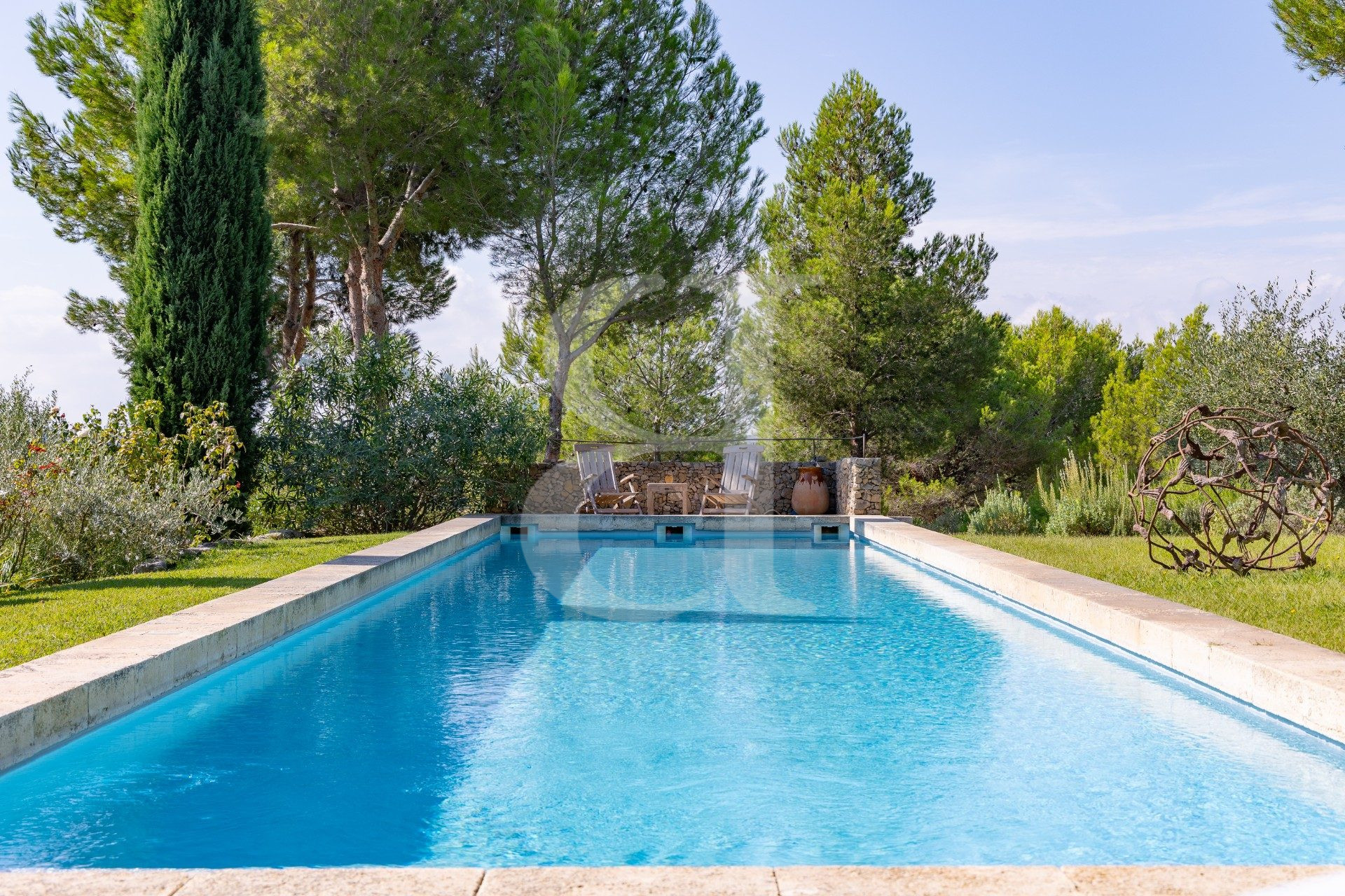 À l'extérieur, sous l'ombre apaisante des pins parasols ou au bord de l'impressionnante piscine chauffée de 18 x 4 mètres, le lieu invite à la détente et à la contemplation. Un sentiment de quiétude rare, à seulement quelques minutes des villages prisés de Maussane-les-Alpilles et de Mouriès, ainsi que de toutes les commodités.