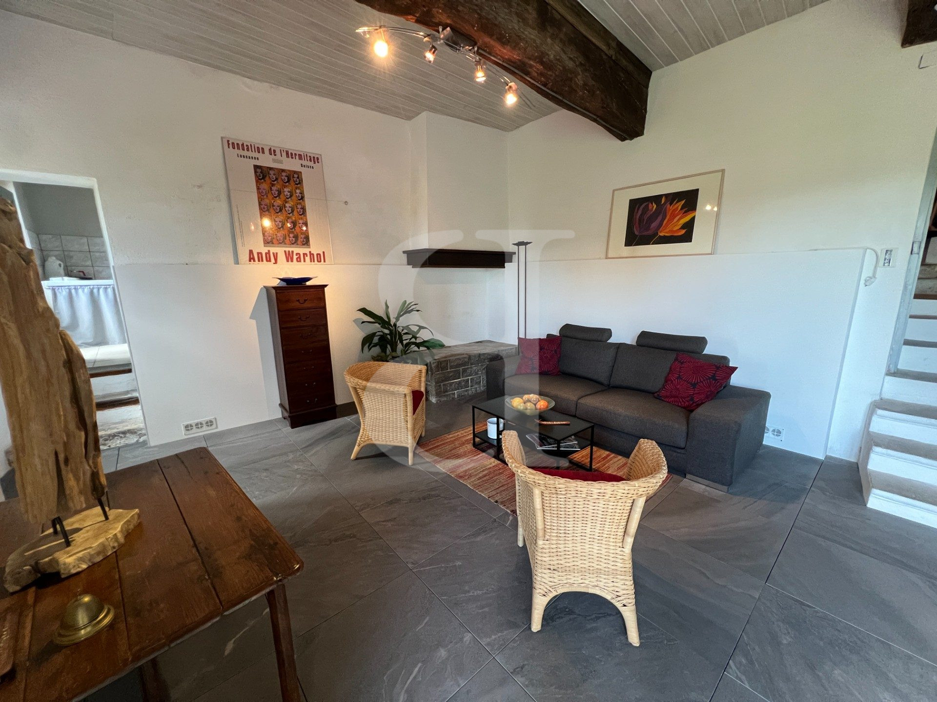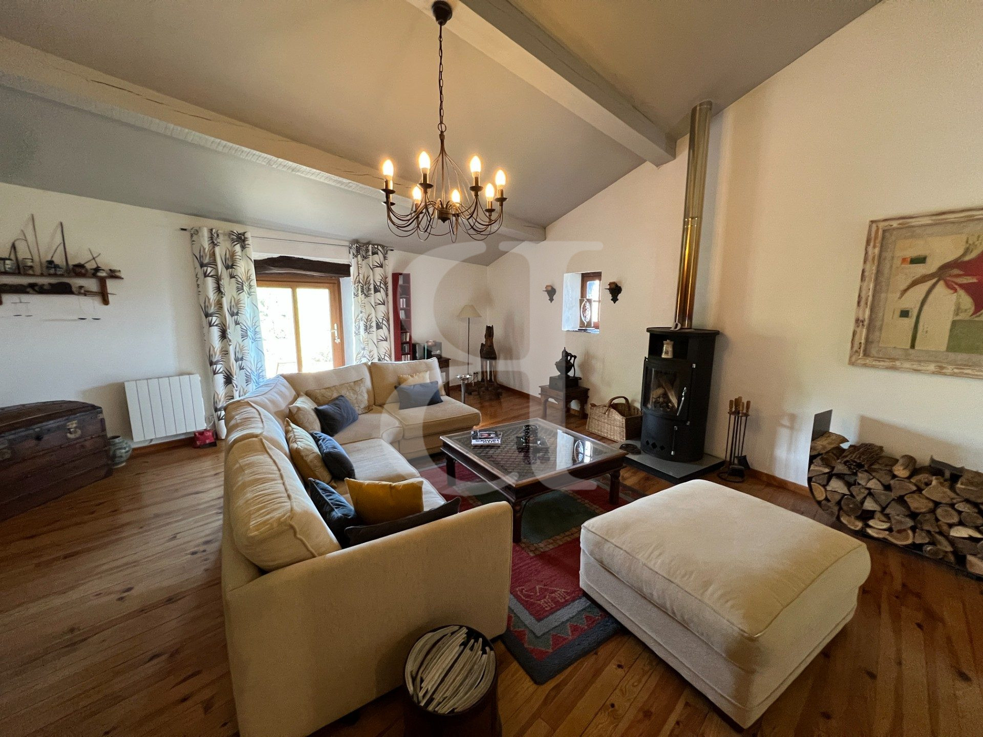 Salon avec poêle à bois 36 m²