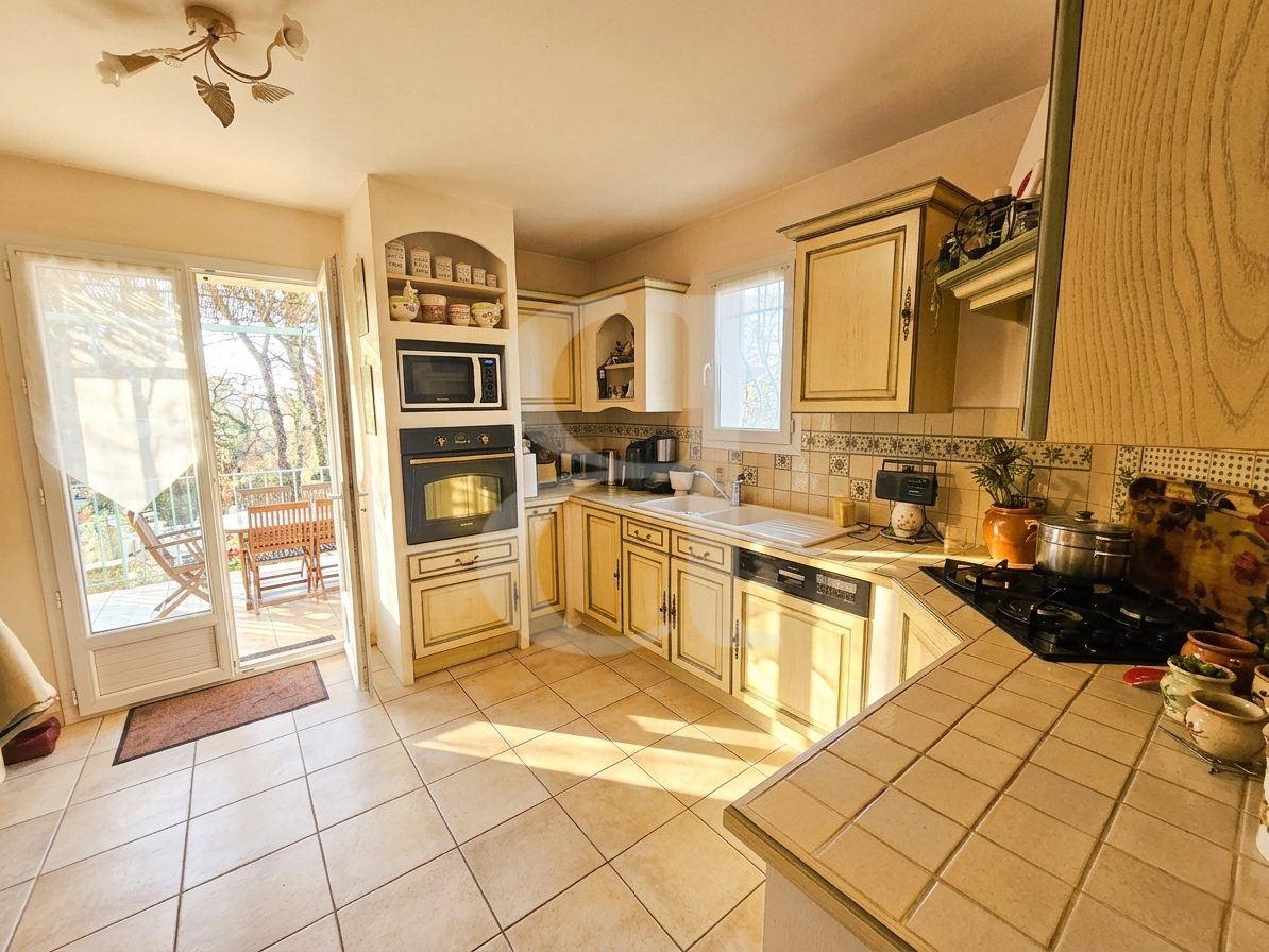 Découvrez cette superbe villa de 156 m², construite en 2008, nichée dans un terrain de 2510 m², offrant une vue imprenable sur les collines environnantes. Cette propriété, exposée plein sud, baigne de lumière chaque recoin de votre futur havre de paix.