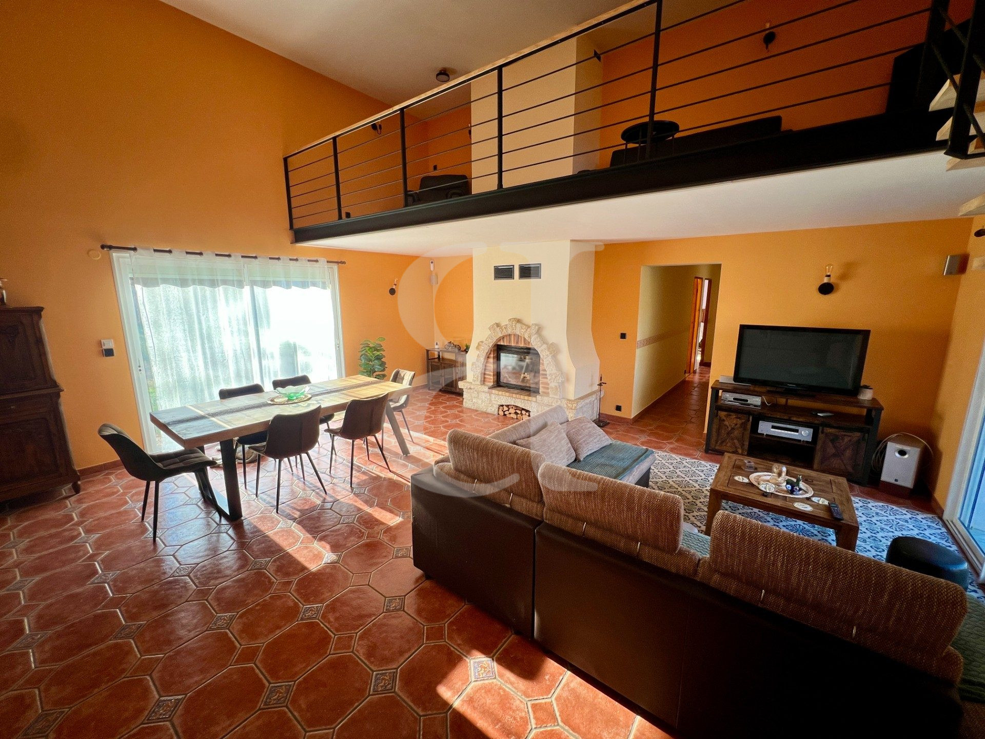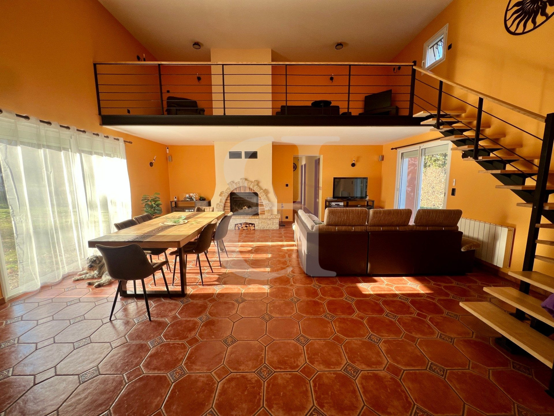 Séjour avec cheminée insert 43.50 m² avec mezzanine 16 m²
