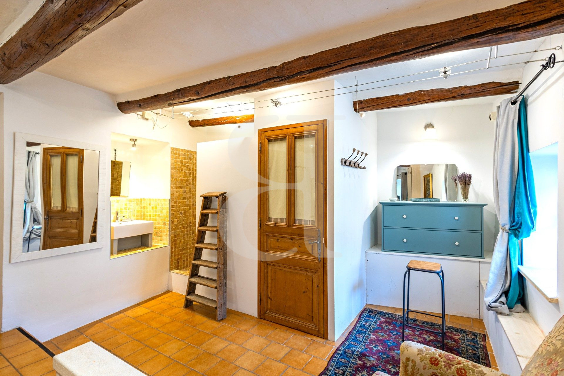 La terrasse intimiste avec sa vue insolite est idéale pour profiter des douces soirées en Provence et faire de cette maison un véritable pied-à-terre de charme.