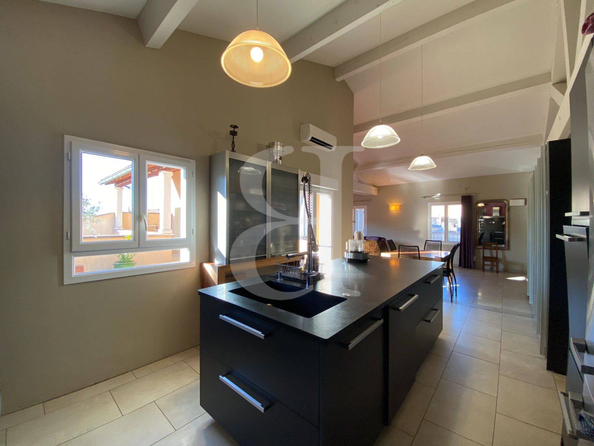 Séjour / Salle à manger avec cuisine équipée et climatisation 56 m² + accès terrasse couverte en partie 30 m²