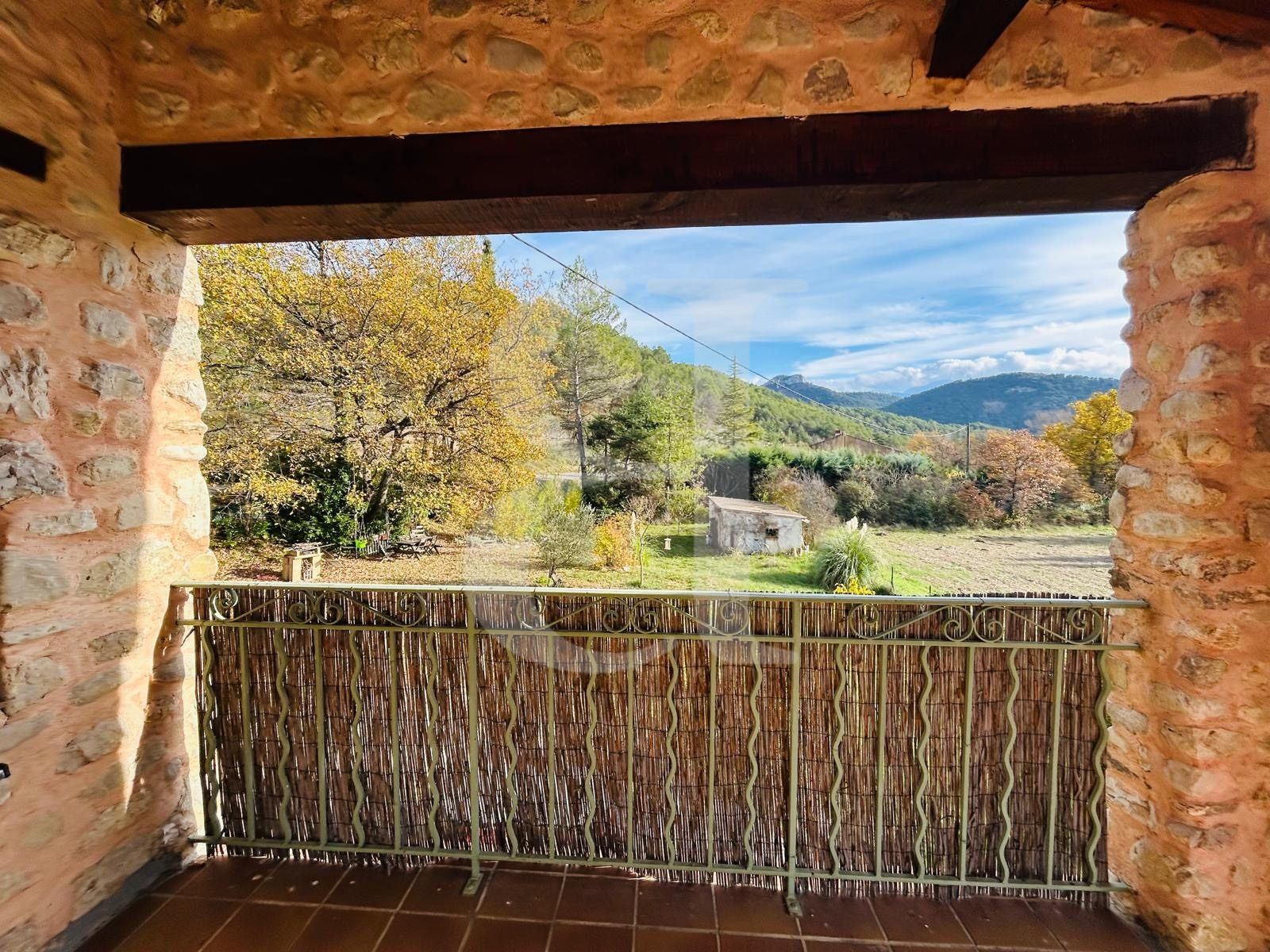 Le mas s'ouvre sur une spacieuse terrasse bénéficiant d'une vue imprenable sur les montagnes, idéale pour savourer des moments de détente en pleine nature. Une seconde terrasse en bois, tout aussi conviviale, prolonge les espaces de vie et invite à profiter du plein air en toutes saisons.