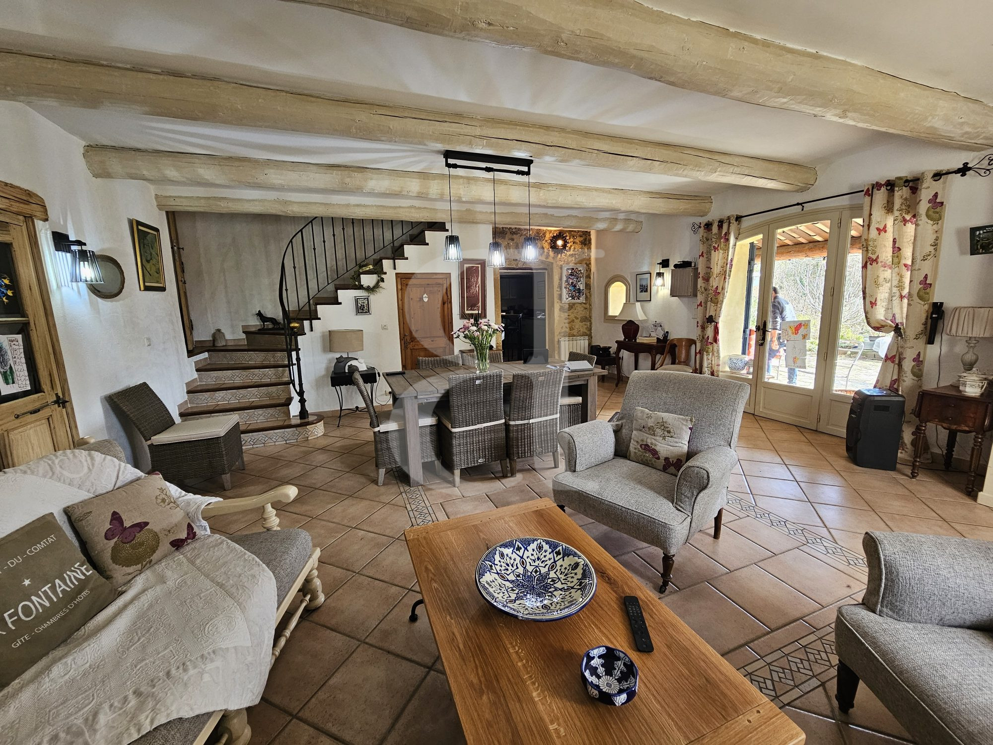 Nichée au coeur de la campagne, à seulement 15 minutes à pied du centre du village, cette propriété d'exception séduit par son authenticité, ses volumes généreux et son environnement privilégié.