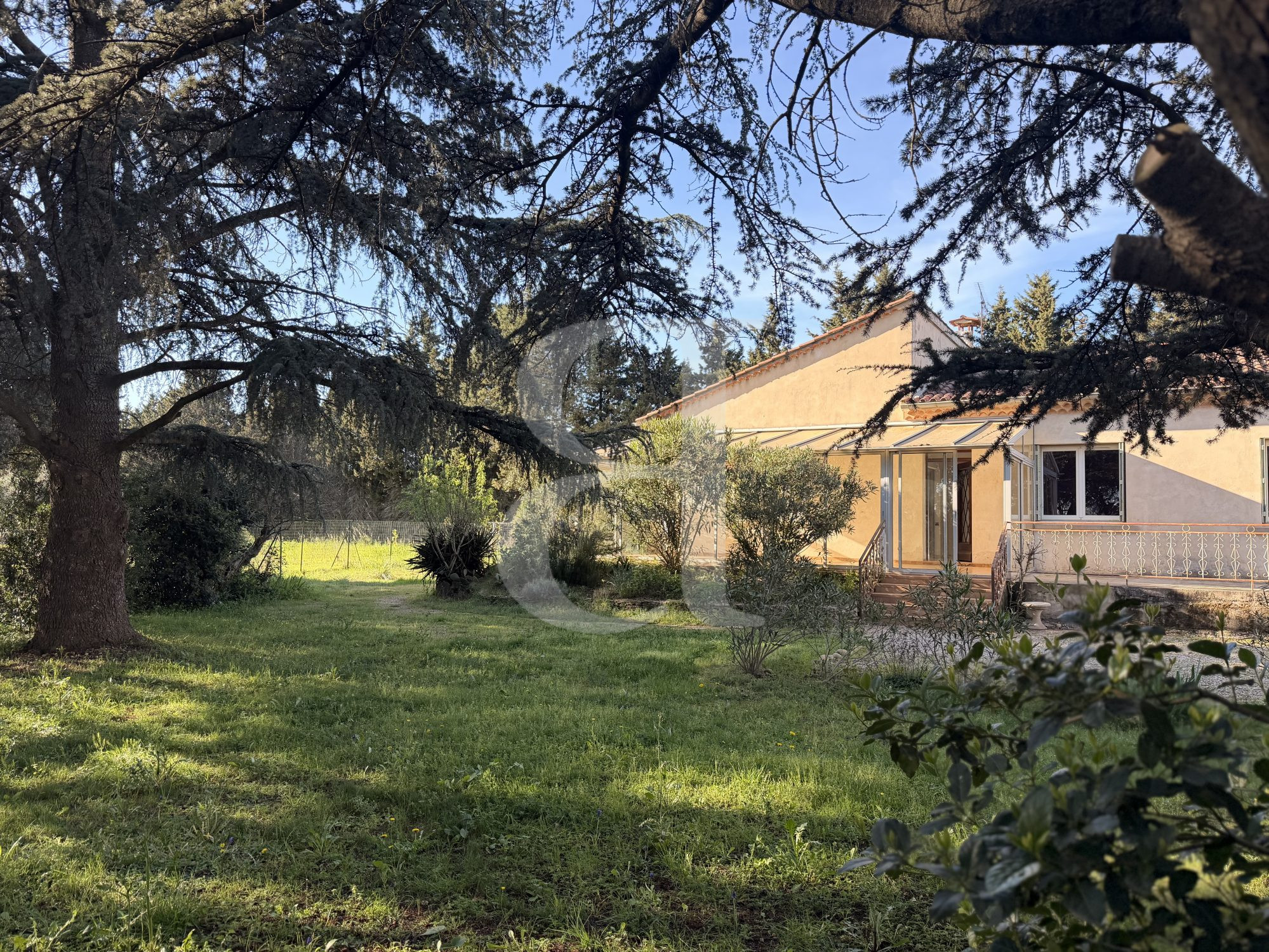 Implantée sur un superbe terrain de 6000 m², la propriété est agrémentée de magnifiques chênes et oliviers.