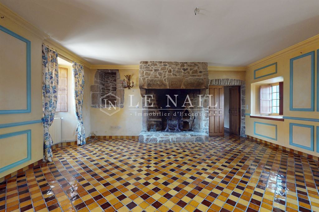 Au rez-de-chaussée : les pièces de réception, traversantes, sont disposées en enfilade. La cuisine, installée dans l’ancienne étable, ouvre sur une salle à manger dotée d’une cheminée monumentale équipée d’un poêle Godin. Un dégagement accueille le départ d’un magnifique escalier à vis et dessert une salle d’eau avec toilettes. Le salon, marqué par une cheminée portant la date de 1663, prolonge ces espaces. À la suite, une bibliothèque, pouvant faire office de chambre de plain-pied, complète ce niveau.