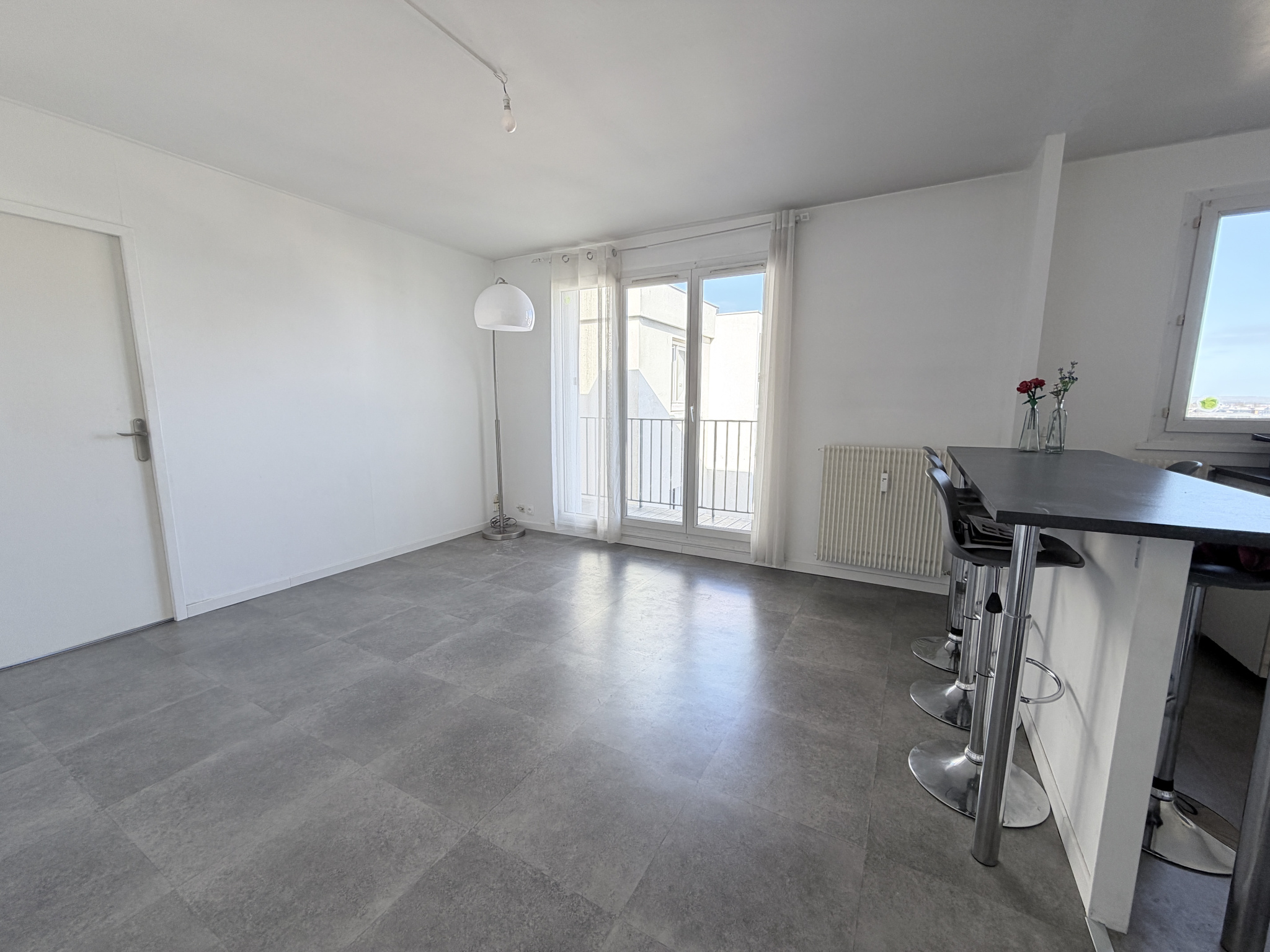 À Reims, appartement T3 situé au 8ème et dernier étage, offrant une vue dégagée sur l'ensemble de la ville et une belle luminosité.