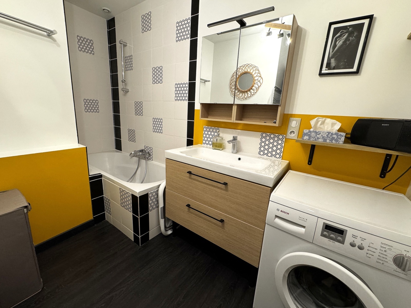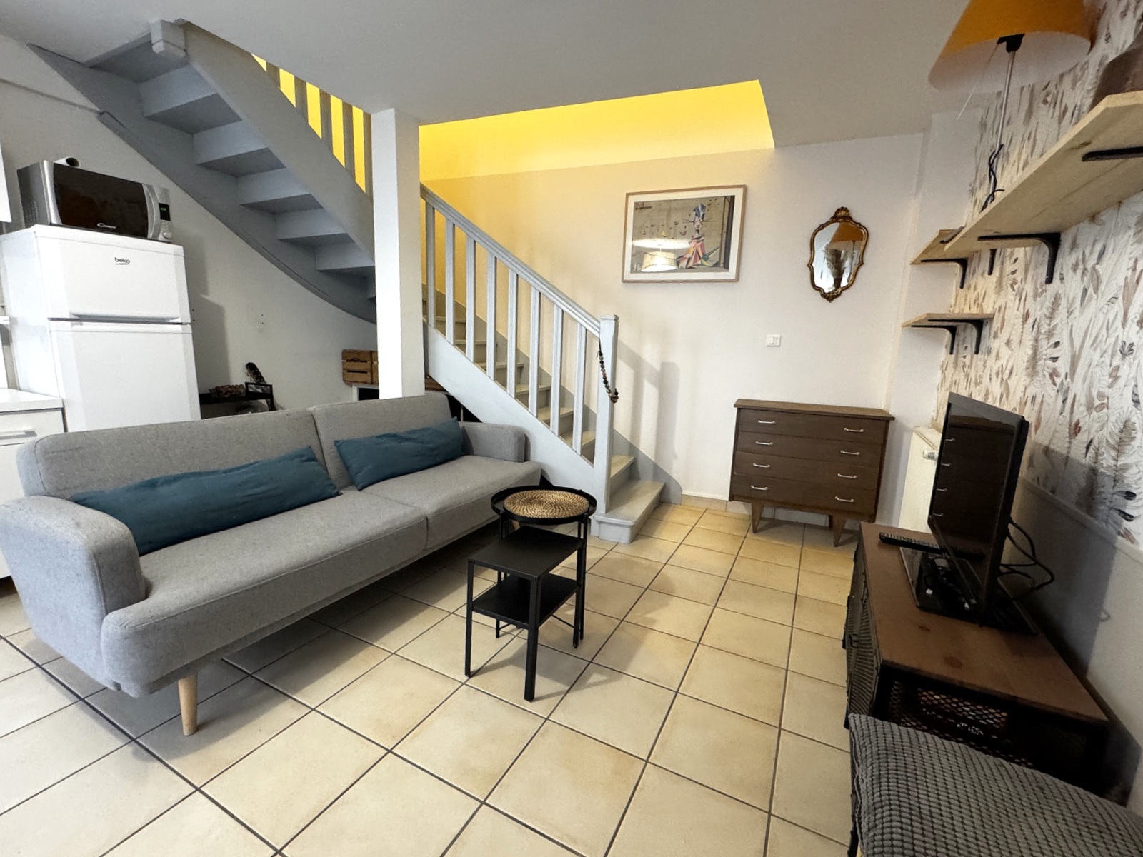 DIJON centre ville, rue Pasteur - Agréable appartement T2 en duplex, de 44m², situé dans une petite copropriété, en retrait de la rue : cuisine équipée ouverte sur séjour, une chambre avec placard, salle de bains, wc. Un cave complète ce bien.