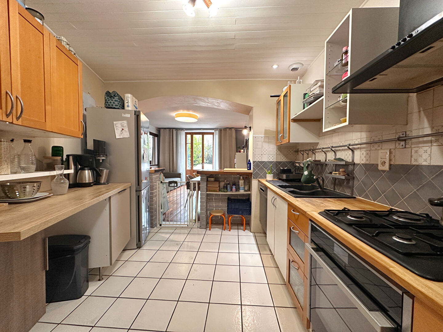 Dès l'entrée, vous découvrirez un séjour chaleureux, prolongé par un espace cuisine avec cellier. Le bien dispose également d'une buanderie et d'un garage attenant, apportant un confort de vie au quotidien.