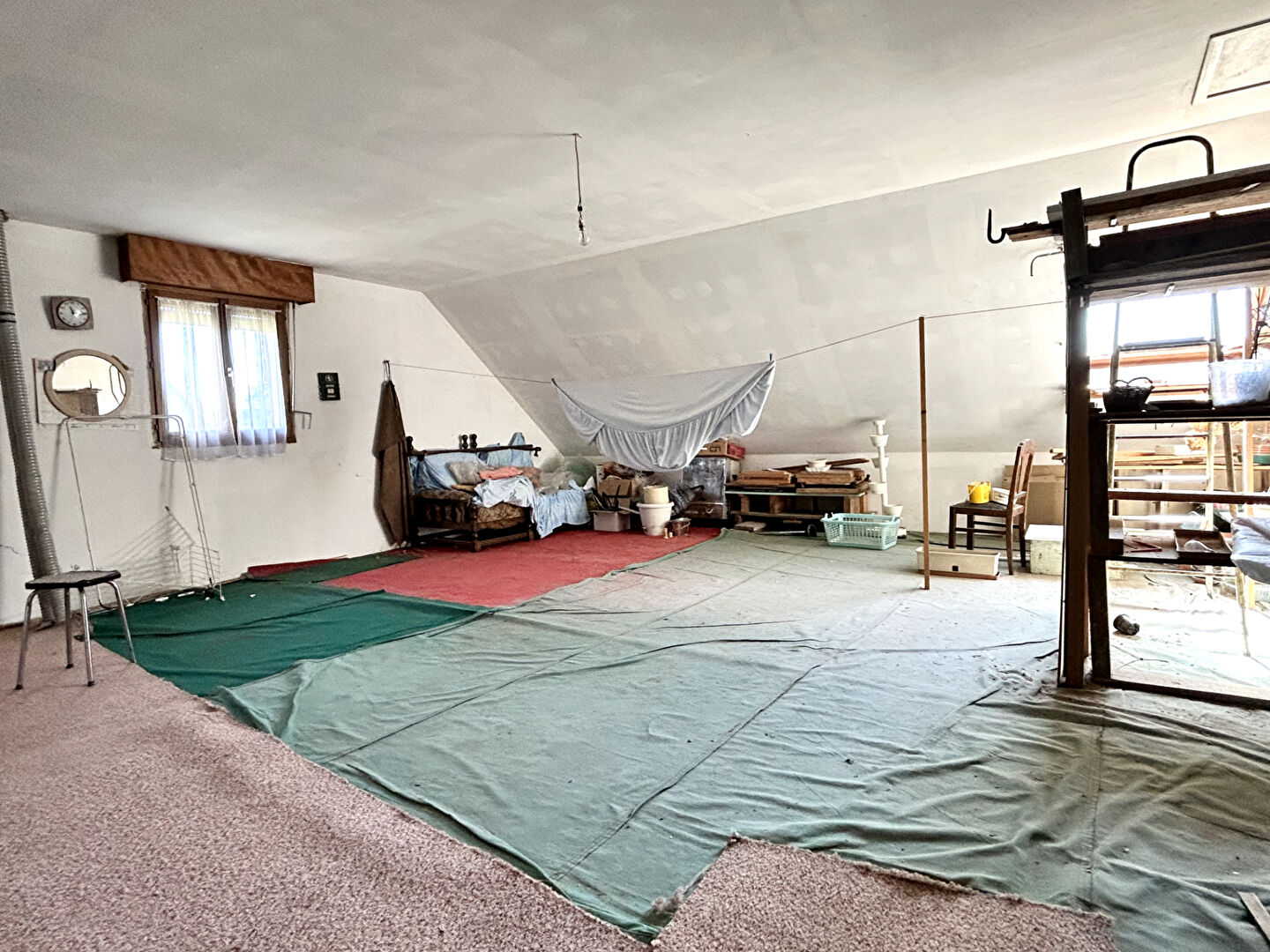 En hypercentre de Bondues, en fond d'allée privée, maison individuelle de 96m2 habitables et 185m2 utiles. Au rez-de-chaussée, un hall d'entrée avec placards, un bureau, un séjour de 30m2 avec cheminée donnant sur un jardin d'environ 300m2 et exposé plein Sud., une grande cuisine équipée et indépendante avec espace repas, deux chambres de 10m2 et 15m2, et une salle de bains. À l'étage un plateau de près de 90m2 au sol, pré aménagé, à conforter, donnant une potentiel maison de +/- 160m2 habitables en semi-plain-pied. Également, un grand garage de 25m2, et parking 2 voitures en façade.