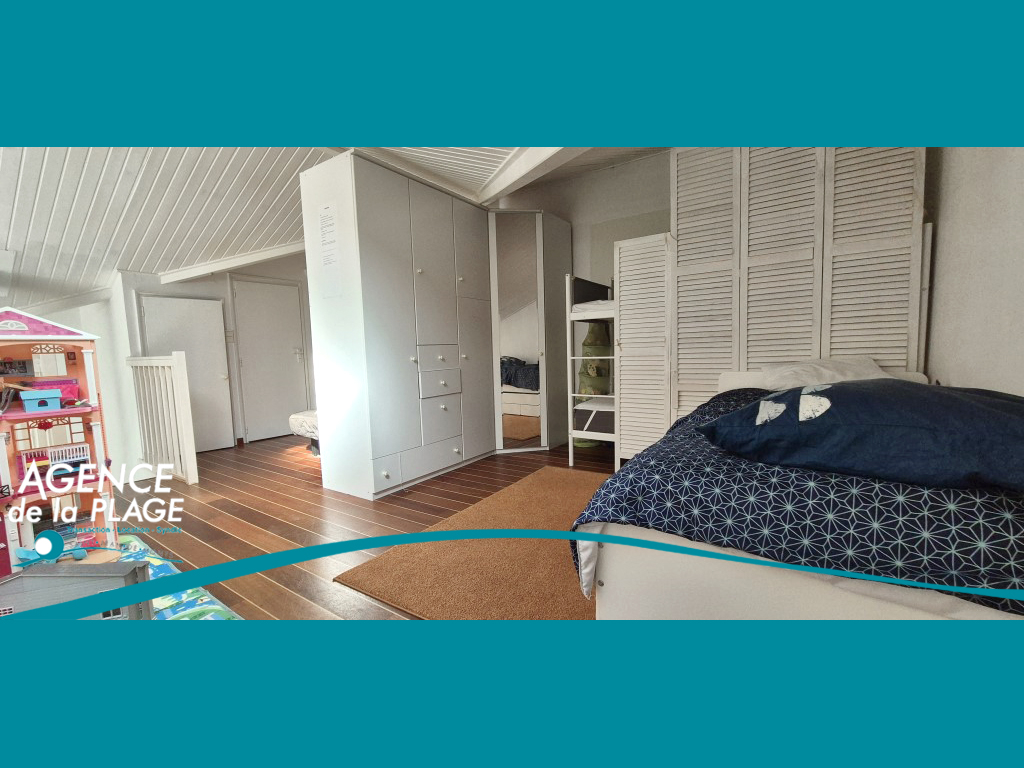 Entrée, pièce de vie avec poêle à granulés, deux chambres (dont une utilisée actuellement en salon), cuisine aménagée et équipée, salle de bains, wc, salle d'eau, vaste mezzanine.