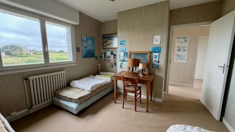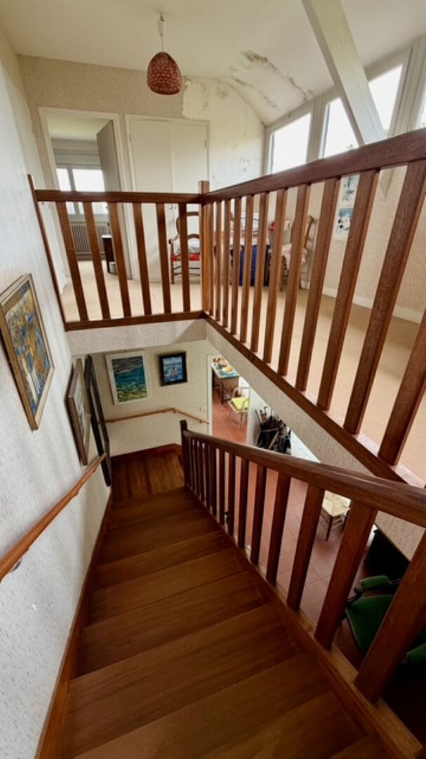 L'étage avec sa belle vue mer s'ouvre sur un grand dégagement distribuant 4 chambres dont 3 avec salle d'eau, une salle de bains et un wc.