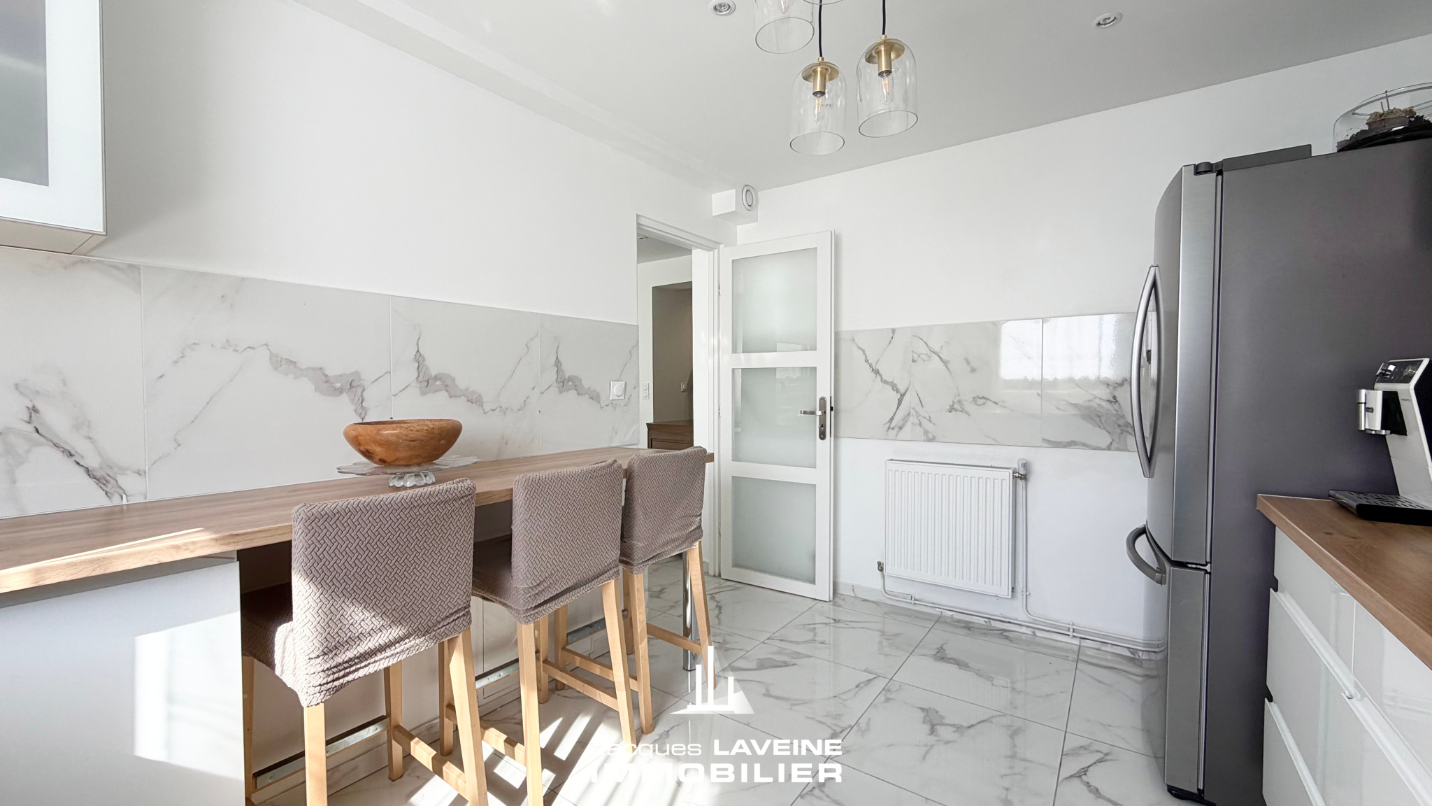 EXCLUSIVITÉ JLI ! Dans une résidence de standing des années 1990 à proximité d'une maison médicale et de toutes les commodités ! Au premier étage, un vaste appartement traversant de 118 m2 entièrement refait à neuf avec goût ! Les larges baies vitrées, les revêtements clairs et les grands espaces dégagés apportent une luminosité constante pour pleinement profiter des lieux et surtout du séjour de quasi 30 m2 exposé plein sud donnant sur un premier balcon. La cuisine équipée est récente et bien agencée, un espace buanderie est intégré aux rangements du couloir pour optimiser encore l'espace. Côté nuit, un bureau, 3 belles chambres dont une suite parentale donnant sur le second balcon. Enfin, vous beneficierez d'une salle de bain moderne et d'un WC séparés avec vasque. Viennent compléter ce bien un garage fermé, une première cave avec électricité sur compteur personnel prête à accueillir un espace buanderie et une pièce aménagée avec fenêtre accessible depuis le garage.