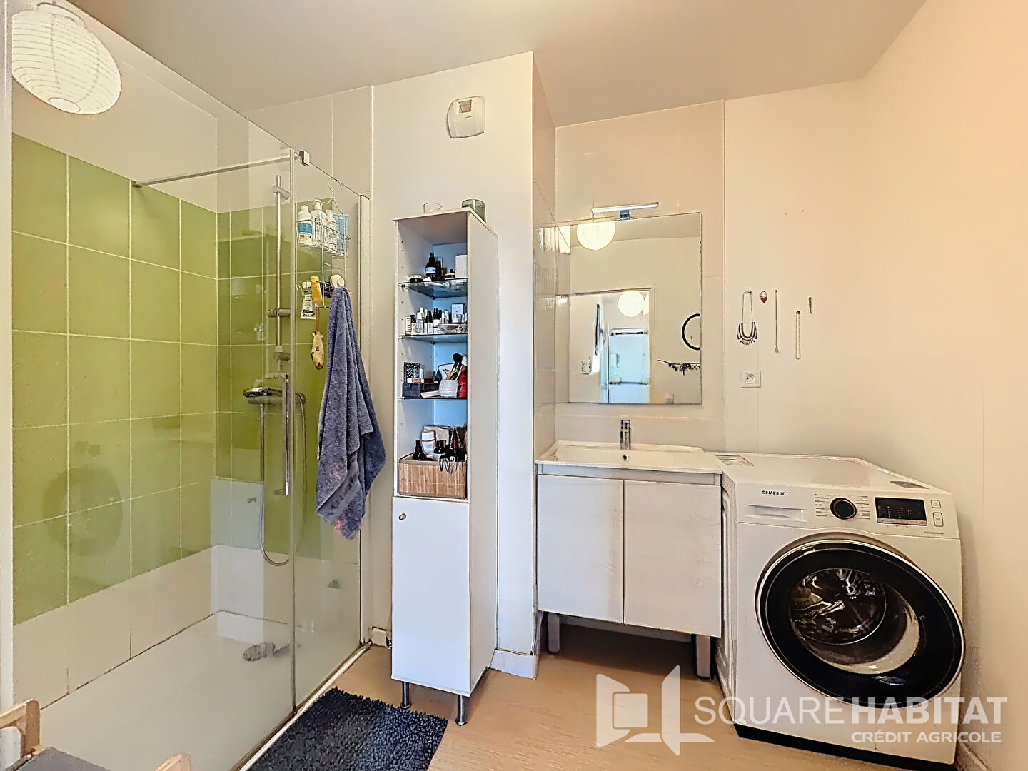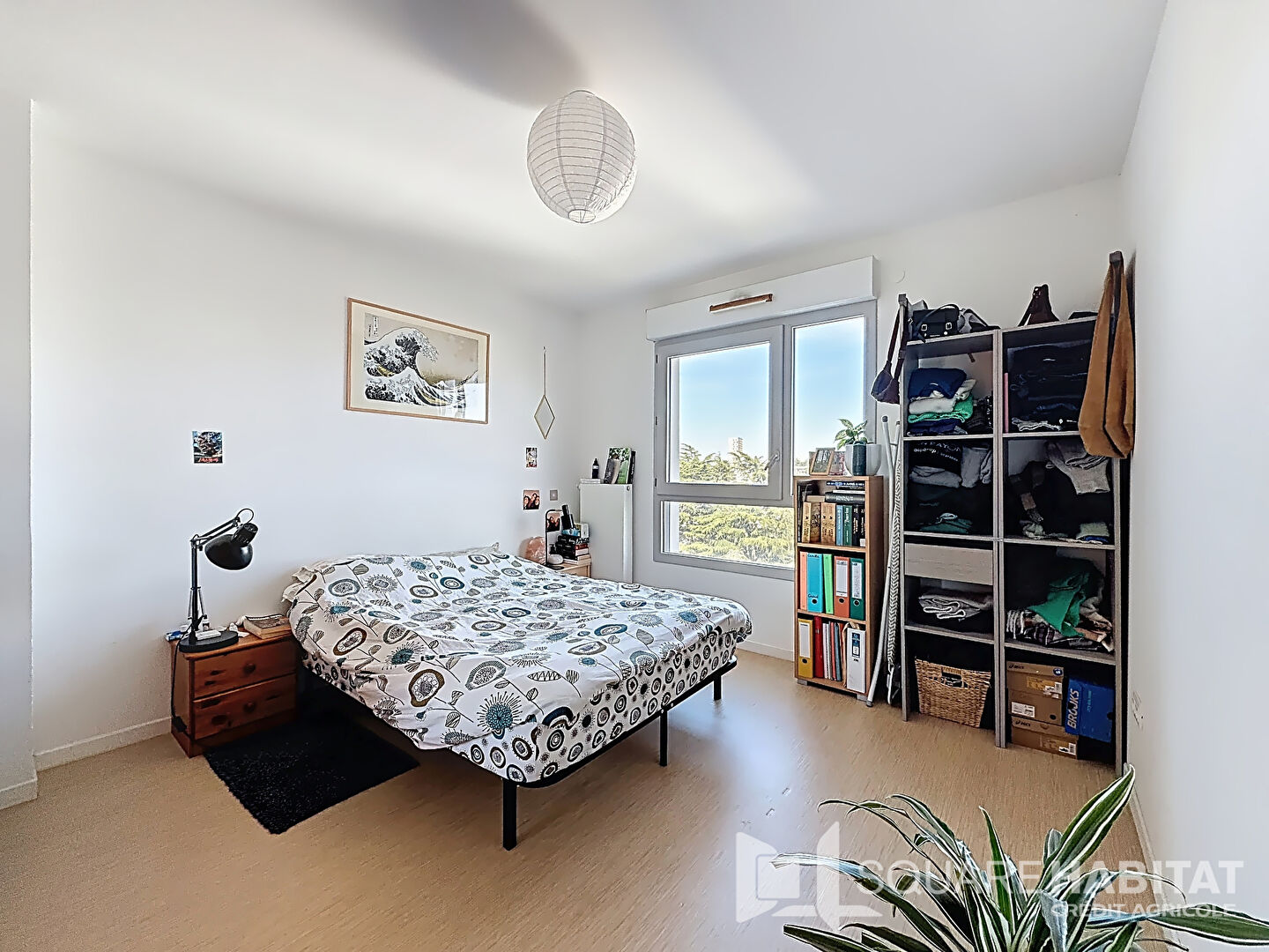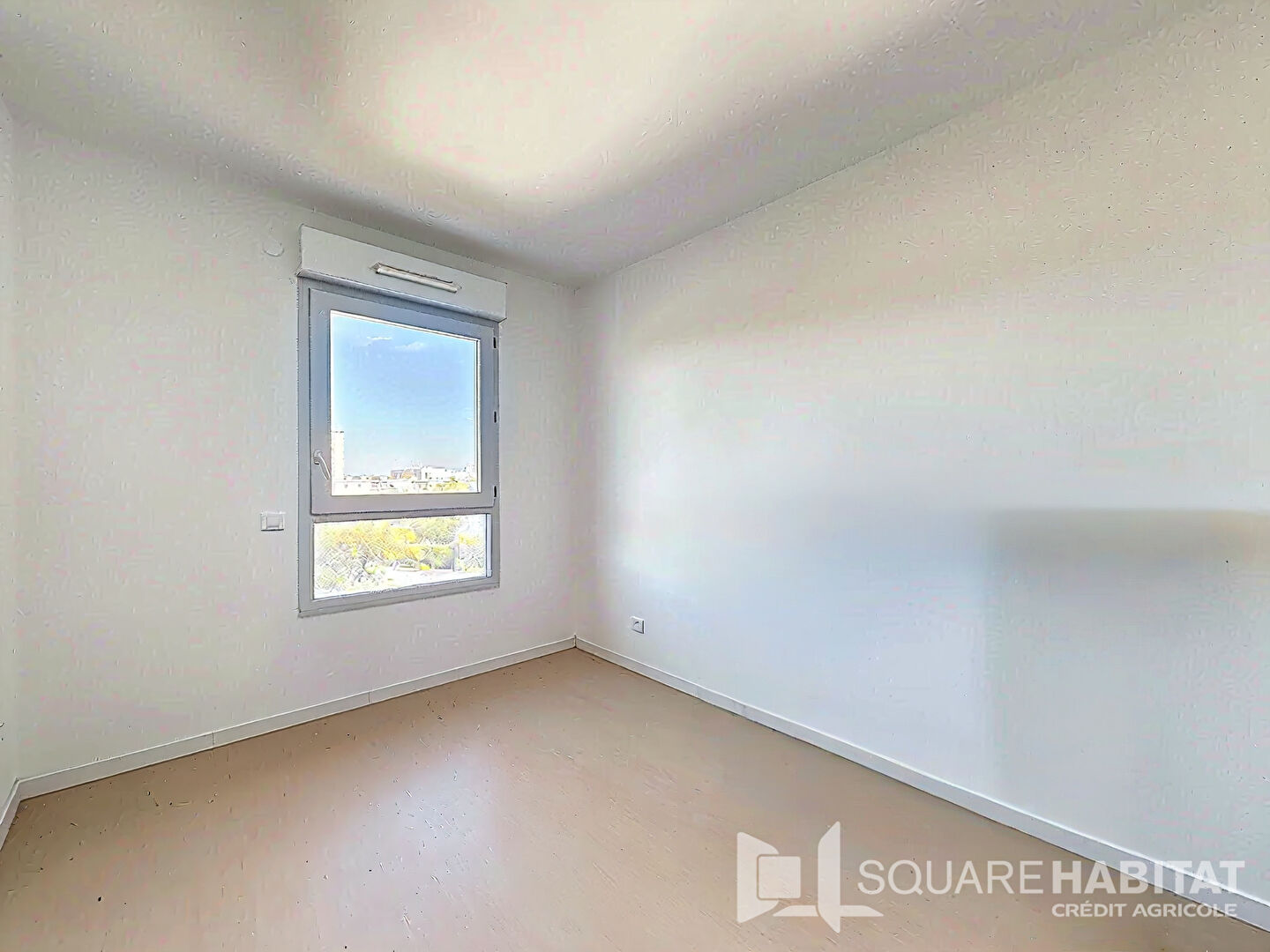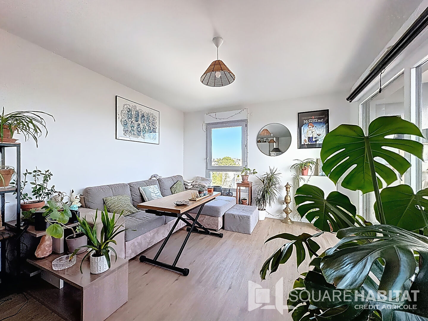 Idéal premier achat, en étage élevé, bel appartement T3 offrant une pièce de vie de 25m2 exposée Sud et ouvrant sur son balcon sans aucun vis-à-vis, comprenant un salon et une cuisine aménagée et équipée (four, plaques, hotte).