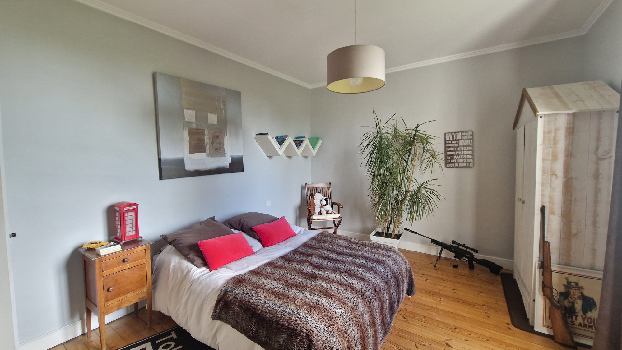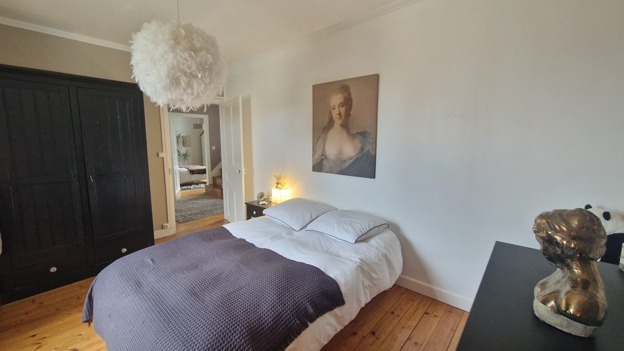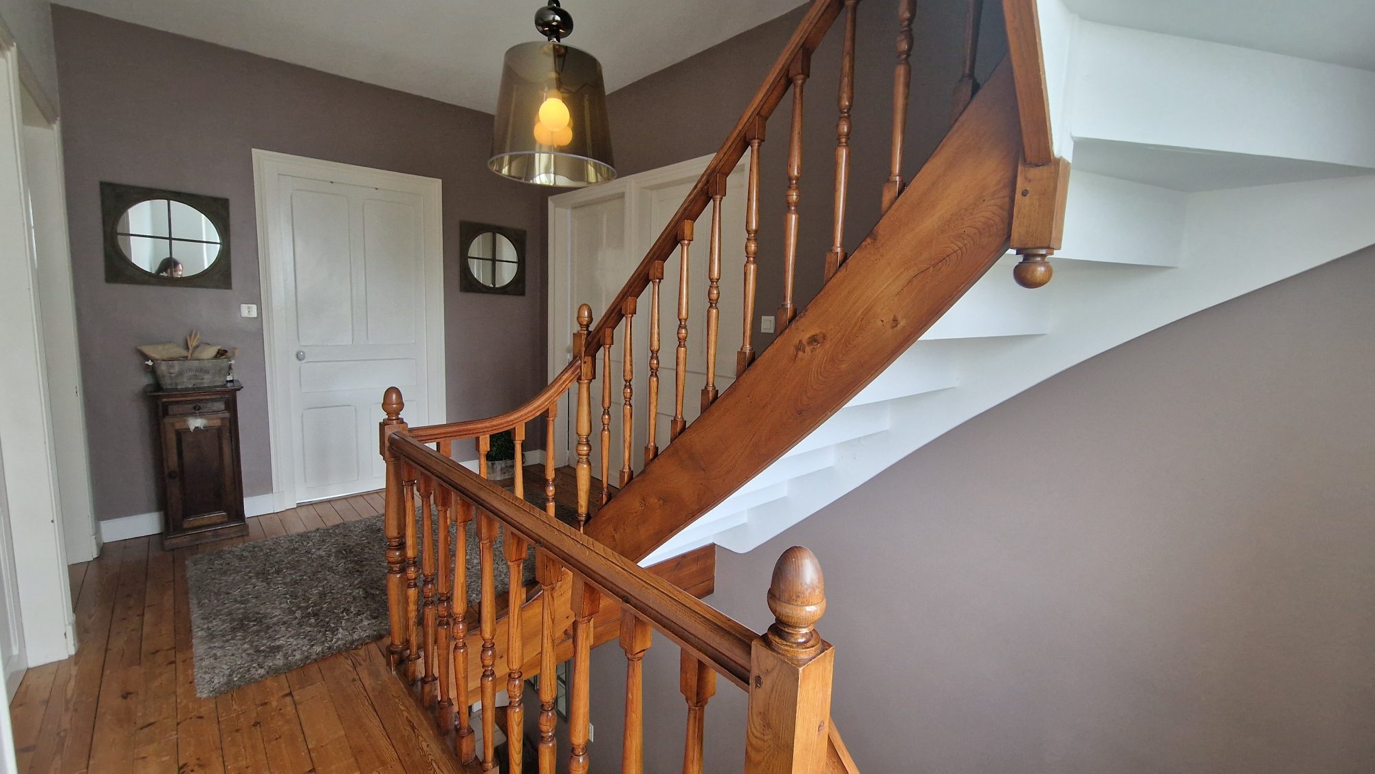 Au 1er étage : un vaste palier desservi par un authentique escalier en bois donnant accès à 4 belles chambres lumineuses dont une avec placard, une salle d'eau avec wc.