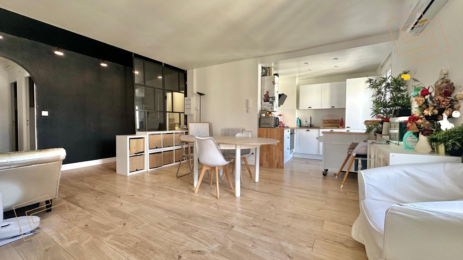 Il se compose d'un hall d'entrée avec rangements, d'un vaste séjour avec cuisine ouverte de 50 m² bénéficiant d'une double exposition, de deux chambres, d'un placard de rangement ainsi que d'une salle de bains récemment rénovée.