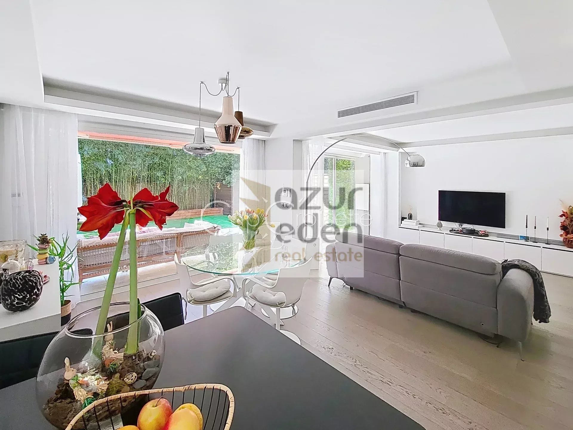 A vendre : Basse Californie. Petite et jolie copropriété au calme absolu. Superbe appartement T6 en duplex exposé Sud sur 100 m2 de jardin/terrasses. Double séjour/cuisine de 45 m2 au niveau zéro. 4 chambres 2 salles d'eau 2 wc en étage sur terrasse de 33 m2. Très belles prestations pour ce bel appartement idéal pour une famille avec enfants. Complété par 2 parking et 3 caves. A voir !!
