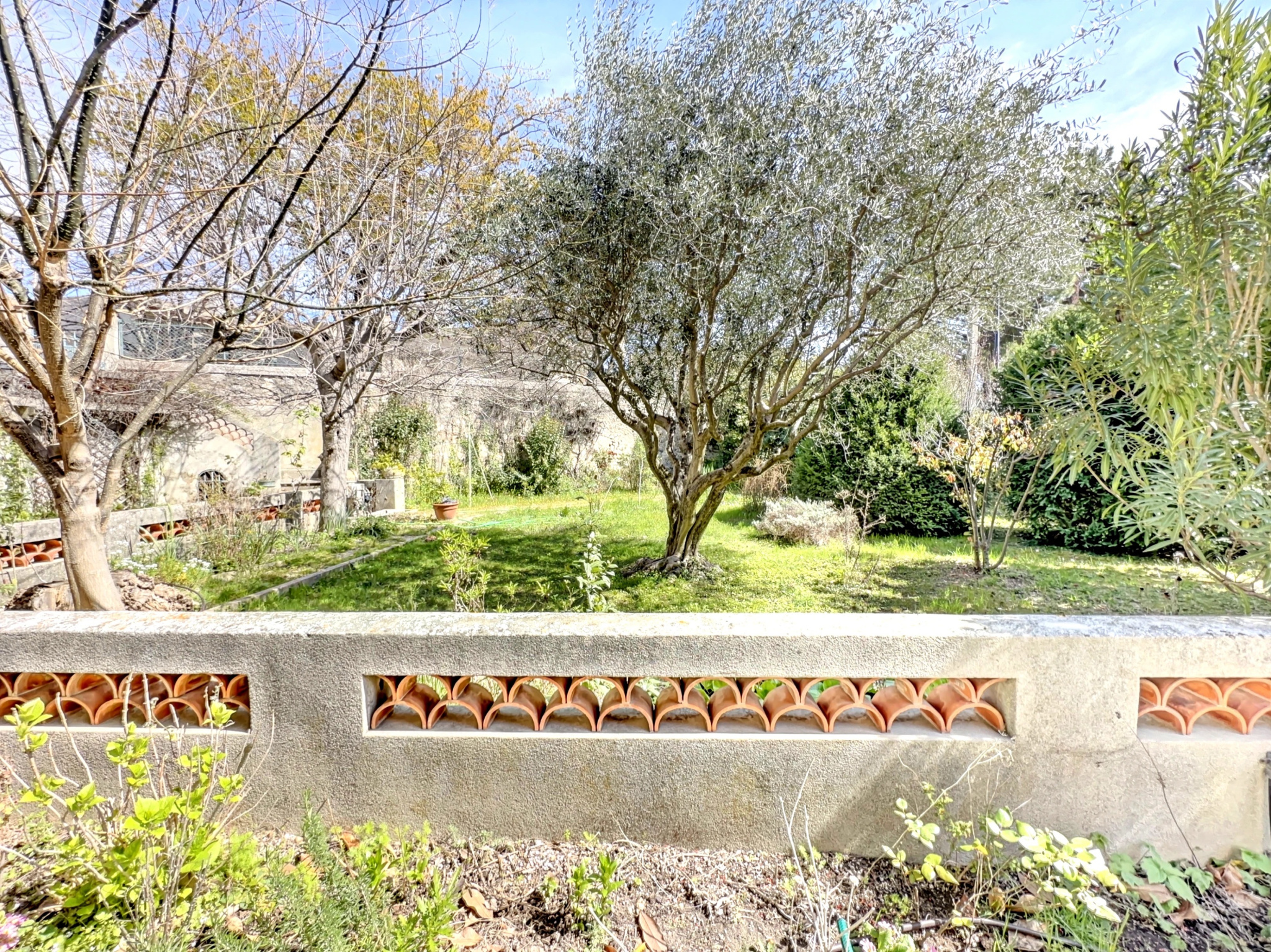 Un extérieur privilégié au coeur d'Aix Le jardin, joliment arboré, constitue un véritable écrin de verdure. La terrasse exposée plein sud permet de profiter pleinement du climat aixois, tandis que le terrain offre encore de belles possibilités d'aménagement, notamment la création d'un espace piscine.