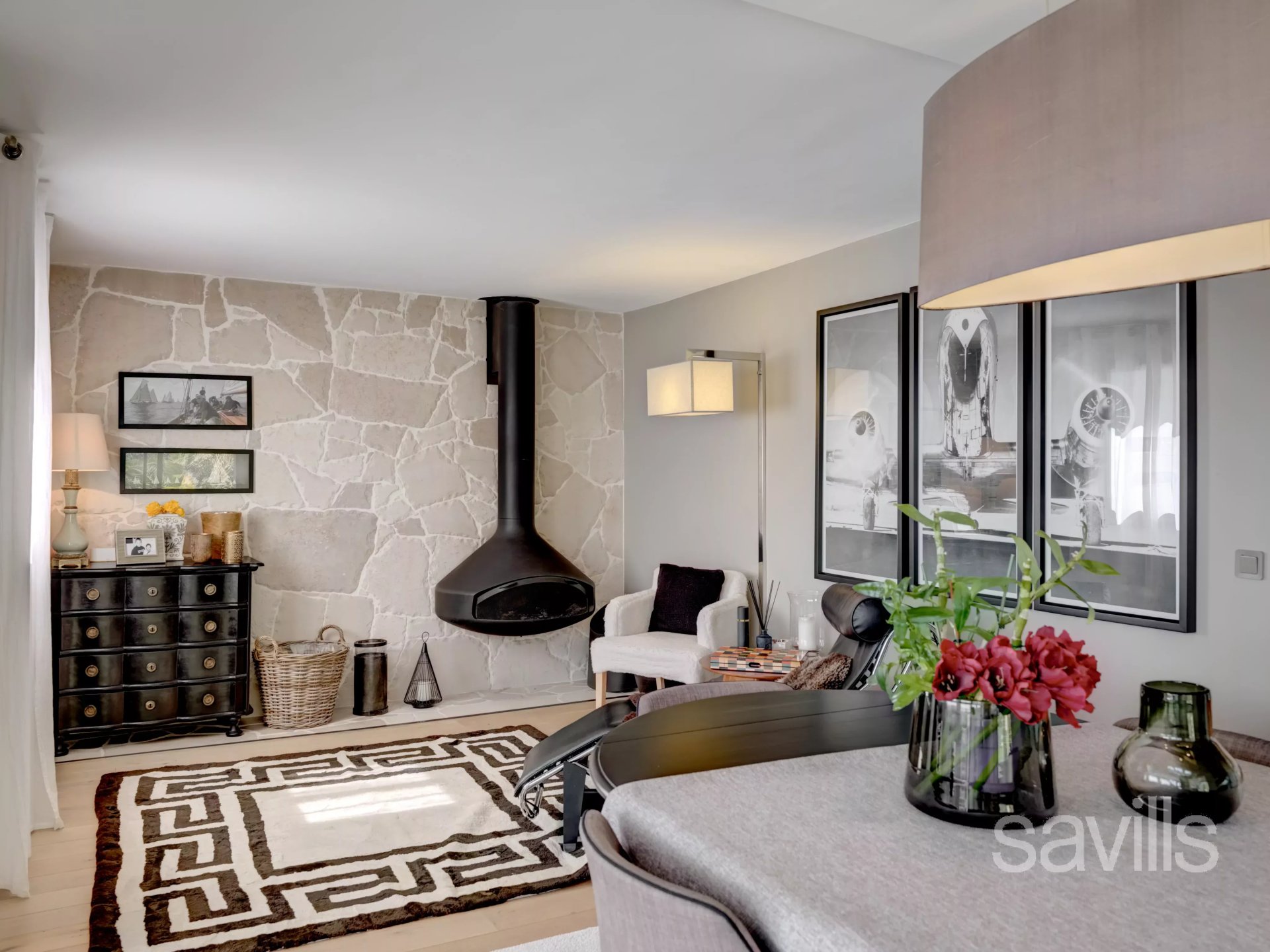 D’une superficie d’environ 206 m², la propriété s’organise sur trois niveaux et séduit par ses volumes généreux et sa luminosité, grâce à de larges ouvertures.