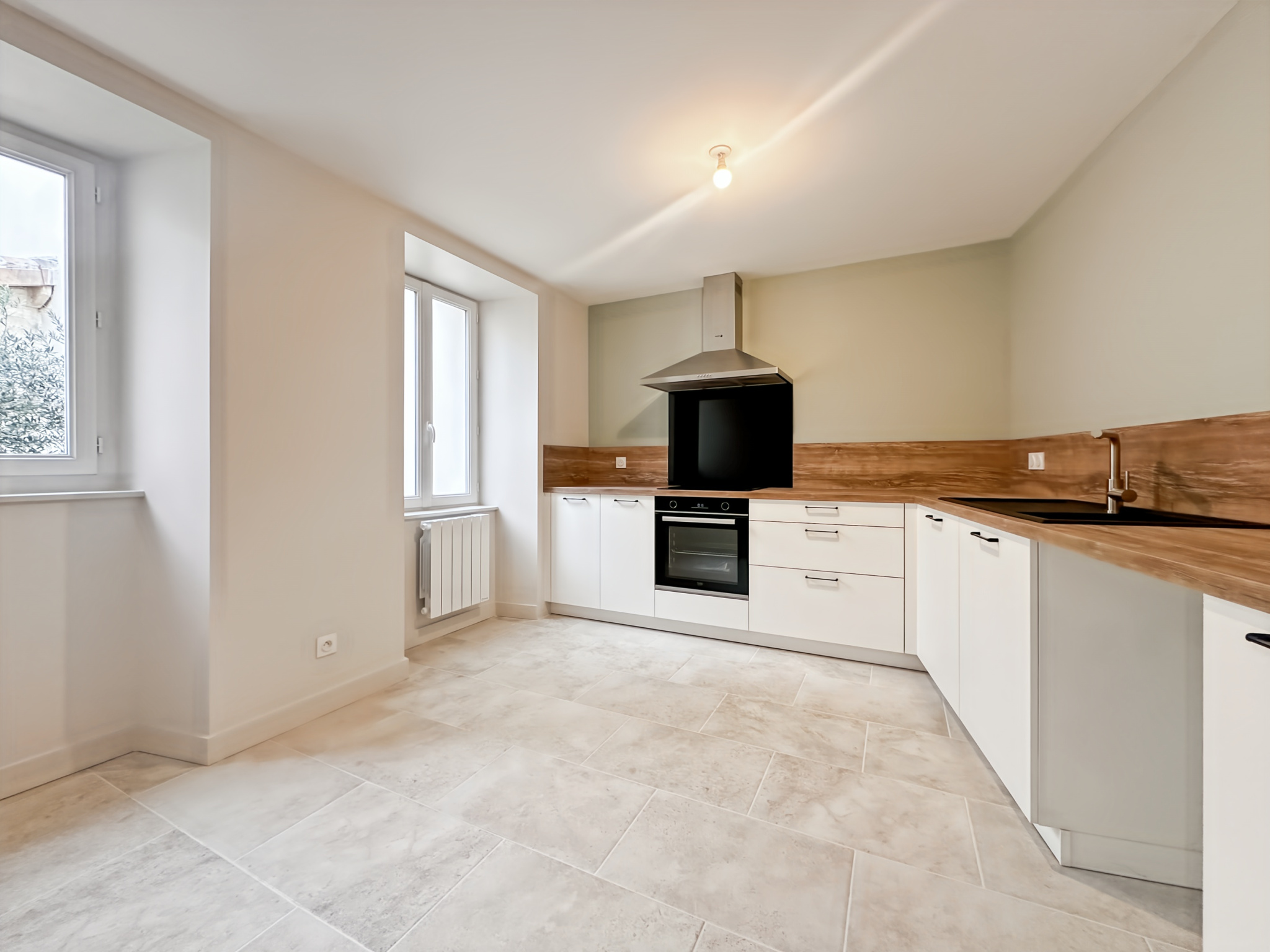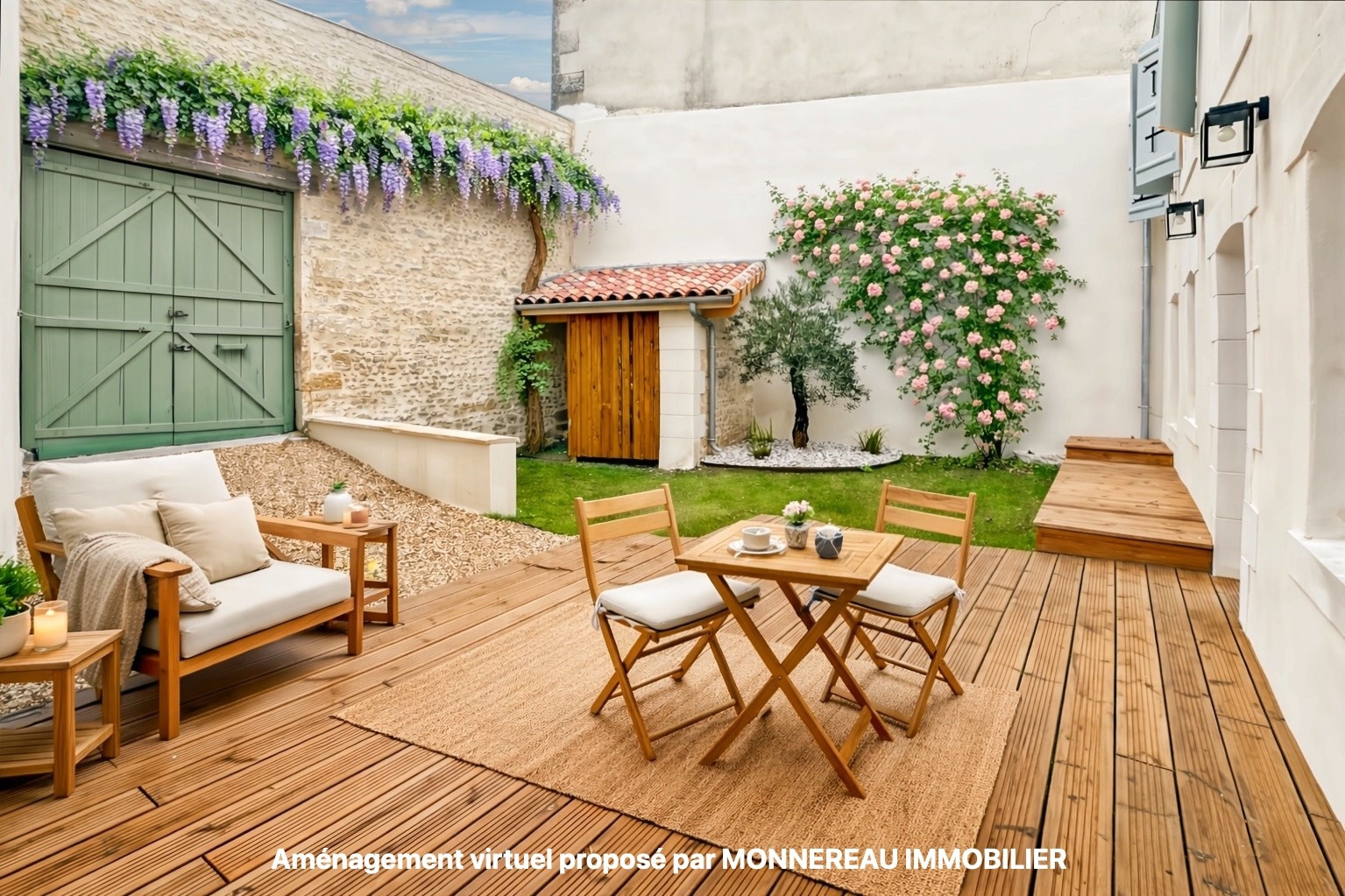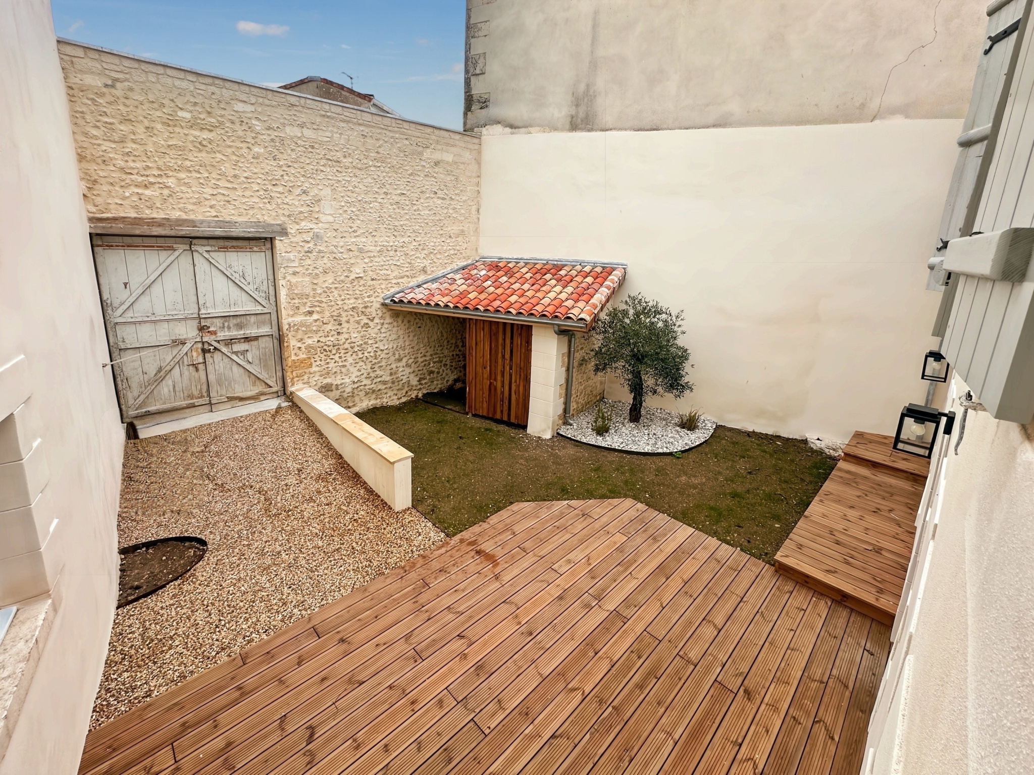 BARBEZIEUX (16) En plein centre de Barbezieux-Saint-Hilaire, maison de ville d'environ 70 m2 habitables entièrement rénovée, offrant un équilibre harmonieux entre le charme de l'ancien et une rénovation actuelle. Dès l'entrée, pièce de vie lumineuse et chaleureuse, agrémentée d'une cheminée ancienne et d'un bel escalier. Cuisine équipée aux lignes contemporaines dans son prolongement. À l'étage, deux chambres confortables et une salle d'eau. C'est très soigné et fort bien aménagé tant le sentiment d'espace est omniprésent. Isolation performante. Tout est neuf ! À l'extérieur, la cour privative avec terrasse bois est un véritable atout en coeur de ville. Intimité garantie. Stationnement à proximité. Il est possible également de rentrer un véhicule dans la cour Une adresse recherchée, à proximité immédiate des commodités, idéale pour une résidence principale ou un pied-à-terre de caractère.