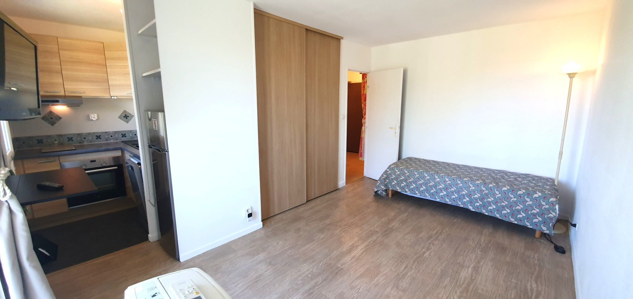 Appartement type studio F1 de 27 m2 situé en étage élevé, comprenant une entrée, chambre cabine pouvant accueillir des lits superposés, une salle d'eau avec toilettes, un séjour ouvrant sur balcon, une cuisine américaine équipée.