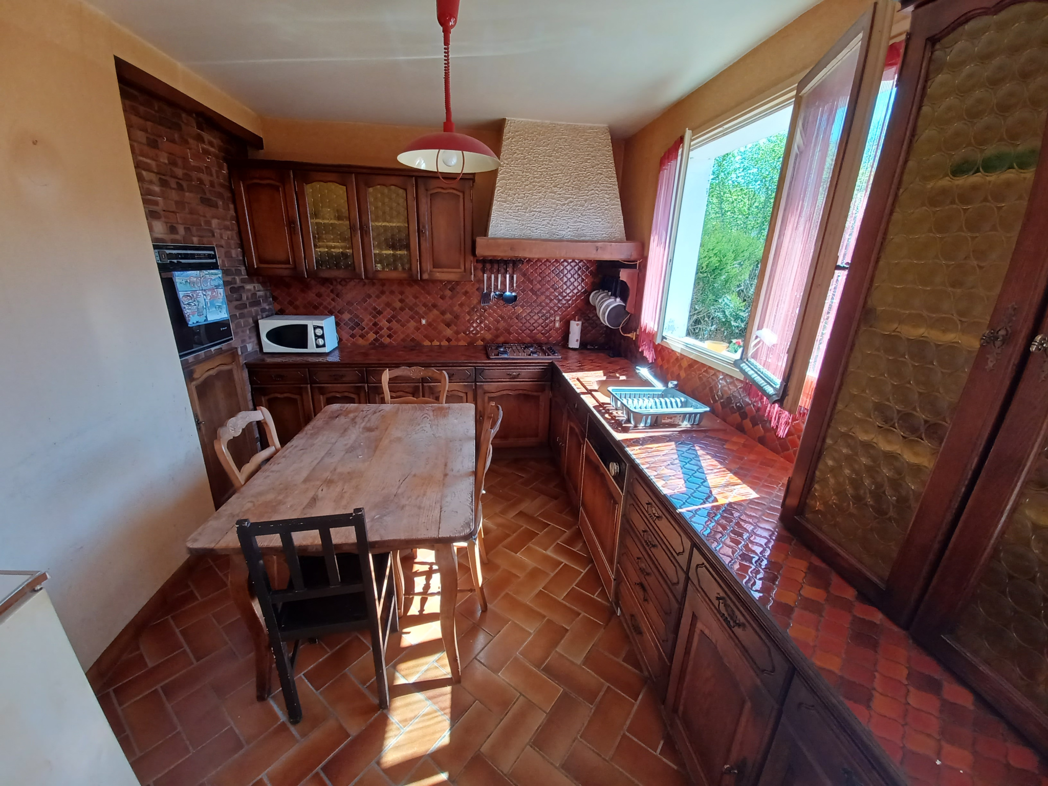 Dans un endroit calme, maison d'env 67m2 habitable comprenant entrée desservant, cuisine aménagée, séjour/salon d'env 27m2 avec balcon et cheminée, dégagement desservant salle 'eau, Wc séparés et une chambre.