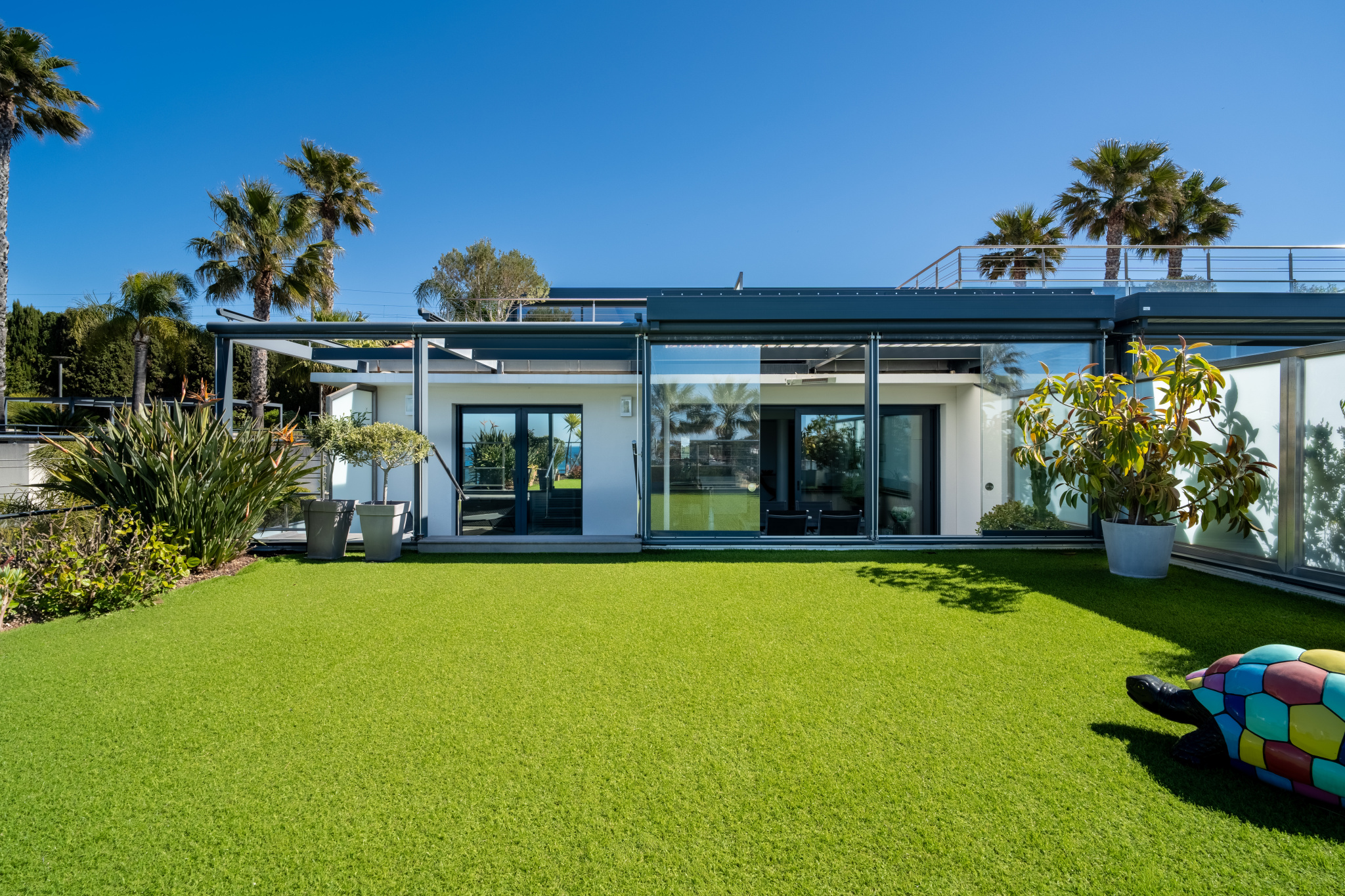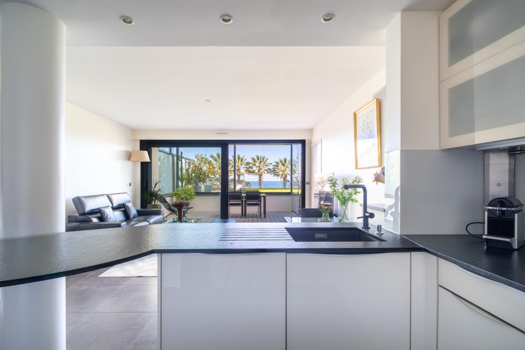 En position dominante au-dessus de la plage dorée, dans une résidence sécurisée de haut standing, cet appartement T4 de 95m2 offre un cadre de vie exceptionnel, avec un accès quasi immédiat à la plage. Le hall d'entrée avec vestiaire et wc 'invités', se prolonge par un couloir distribuant, sur la droite, l'espace nuit composé de deux chambres et d'une salle de douche avec wc. Dans le prolongement, un bel espace de vie réunissant séjour et cuisine ouverte entièrement équipée, ainsi qu'une suite parentale avec salle d'eau privative, wc et grand placard. Le séjour ainsi que la suite parentale s'ouvrent sur une vaste terrasse de 88 m2, véritable prolongement de l'appartement, dont une partie est aménagée sous pergola bioclimatique, permettant d'en profiter en toute saison. La vue y est tout simplement remarquable, offrant un panorama mer omniprésent sur la baie de Bandol et l'île de Bendor. L'appartement est vendu avec une place de stationnement privative numérotée. L'acquisition d'un grand garage est possible en sus. Un bien rare, où la vue et les extérieurs occupent une place centrale dans le quotidien.