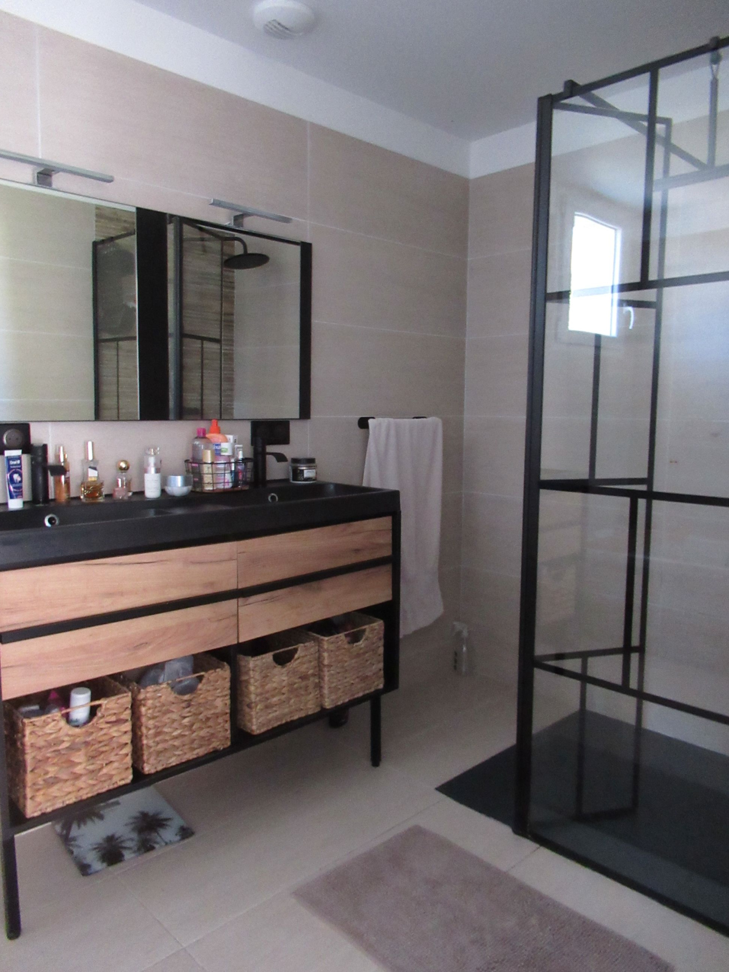 En co-exclusivité avec l'agence MONTAMER, nous vous proposons cette maison individuelle de 2022, comprenant un vaste séjour luminueux avec sa cuisine américaine équipée, une suite parentale en rez de chaussée avec chambre, dressing, salle de bain complète (baignoire, douche, vasque), et WC indépendant. A l'étage, deux chambres, une salle d'eau avec WC, dégagement avec rangements. Un vaste garage, donnant sur l'arrière de la maison, et son petit jardin, ainsi que le sous sol.