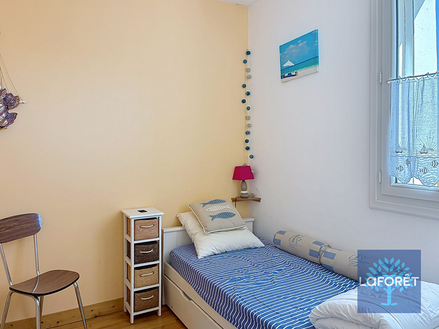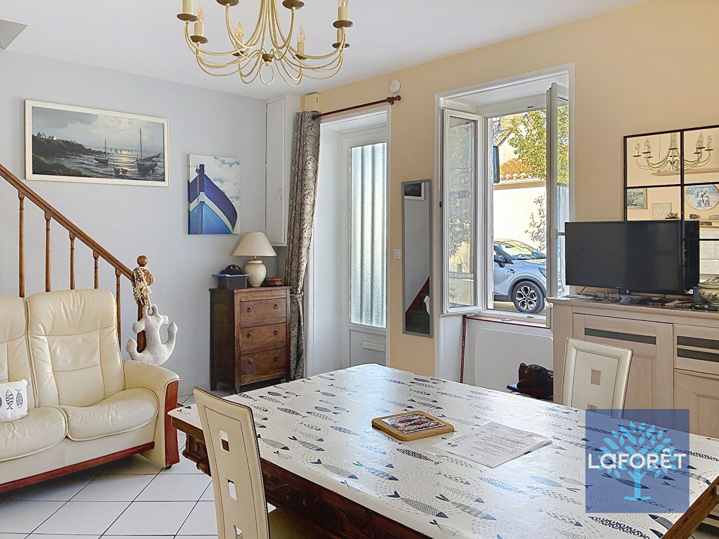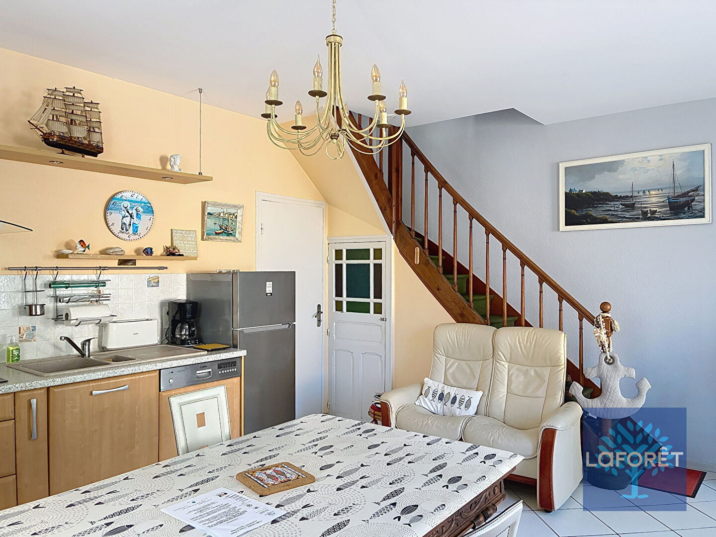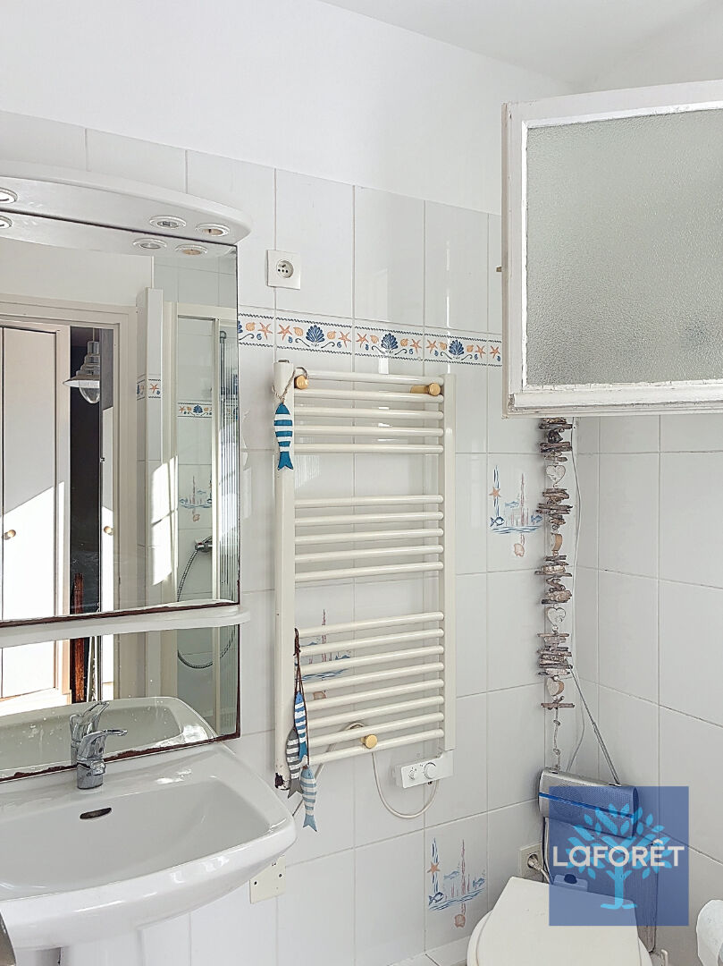 Quartier gare. Centre-ville et plage à pied pour cette ravissante maison bien entretenue comprenant au rez-de-chaussée : espace de vie avec cuisine aménagée et équipée, wc.