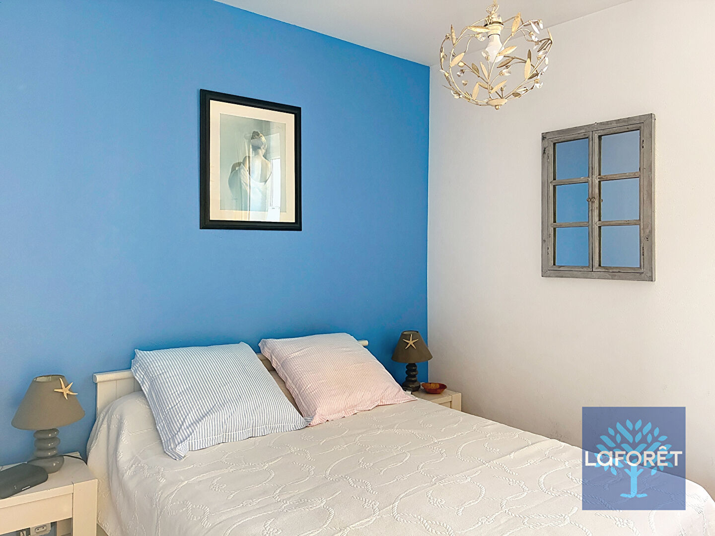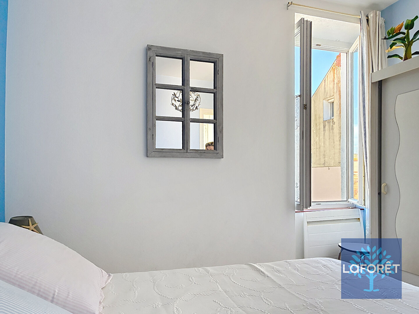 A l'étage : deux chambres, penderie, salle d'eau avec wc, une belle terrasse à l'abri des regards.