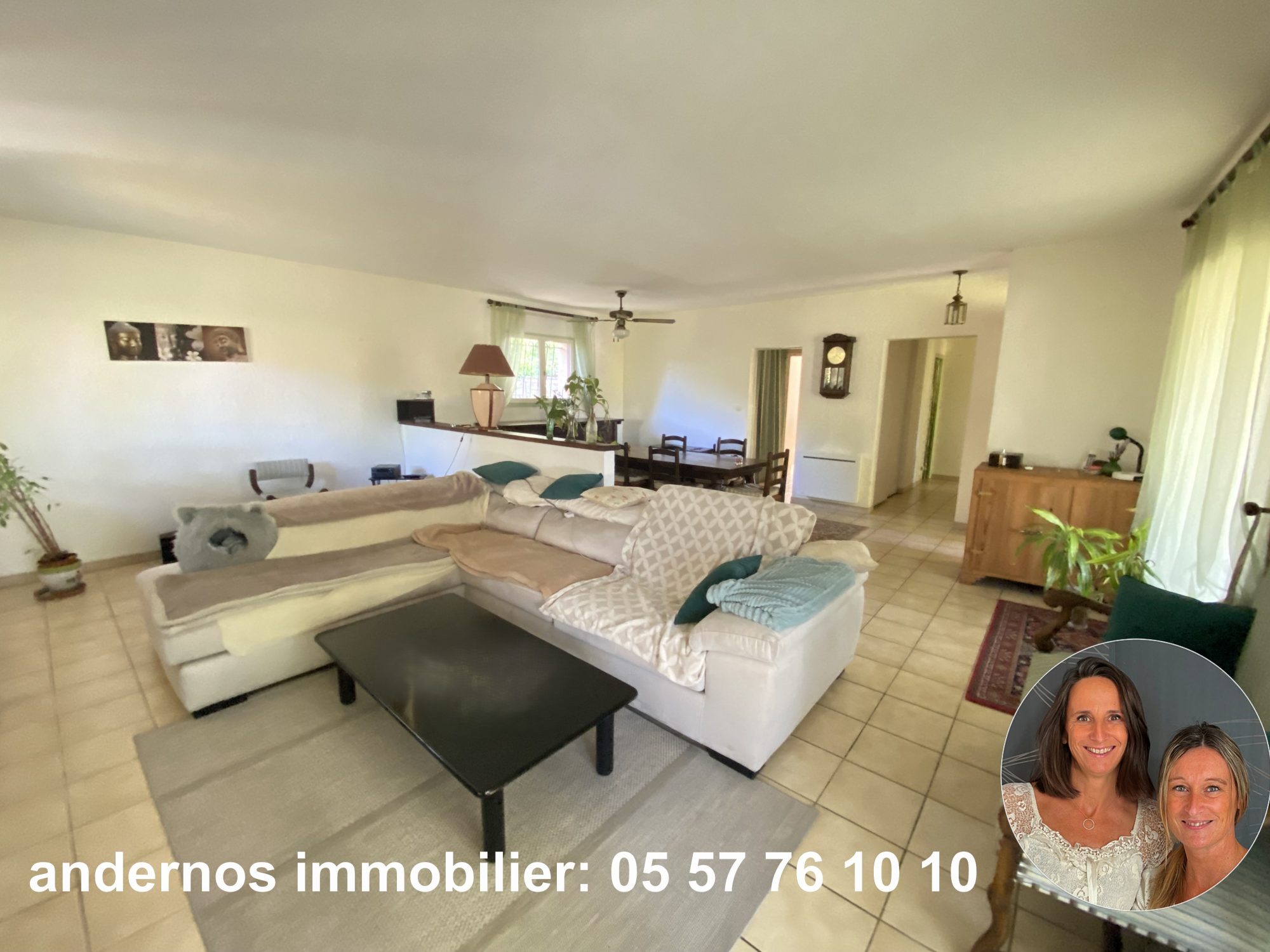 Cette maison présente un cadre intime et verdoyant, la proximité du bassin à pied reste un atout complémentaire.
