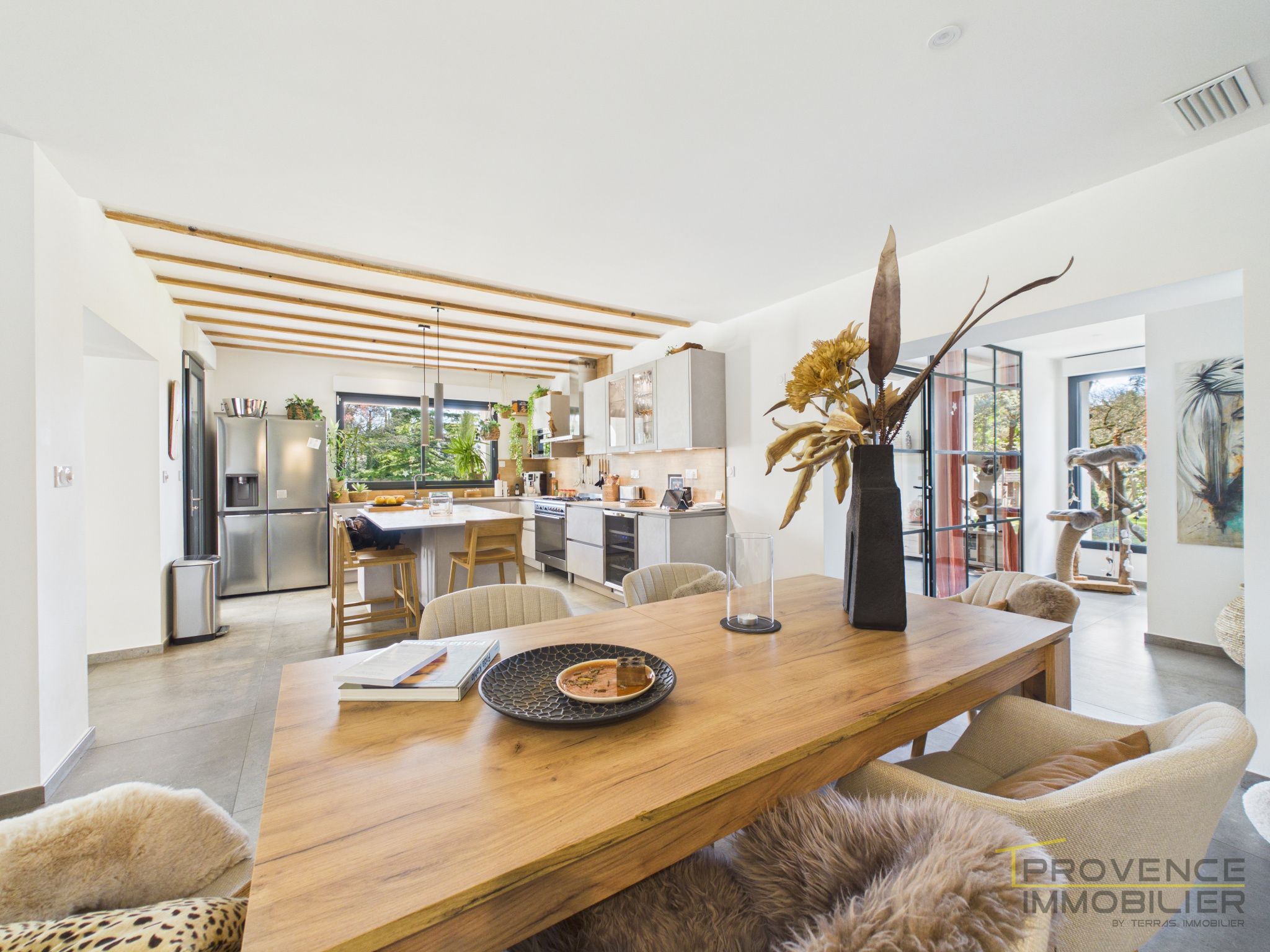 Située sur la commune très recherchée d'Allan, à l'est de Montélimar, cette agréable maison développe 147 m2 habitables au coeur d'un magnifique terrain arboré de 2 920 m2, soigneusement entretenu et particulièrement paisible. La maison offre au rez-de-chaussée une organisation confortable et fonctionnelle : une pièce de vie lumineuse avec cuisine ouverte sur un espace salle à manger et un salon donnant directement sur une grande terrasse en partie couverte. La partie nuit comprend une suite parentale avec baie vitrée permettant d'accèder au jardin, une chambre avec salle d'eau et WC et une chambre avec mezzanine ouverte sur la terrasse. Un cellier et un WC indépendant complètent ce niveau. À l'étage, un bureau mansardé en espace ouvert constitue un lieu idéal pour le télétravail ou un coin lecture. Une pièce supplémentaire mansardée peut facilement accueillir une chambre d'appoint pour les invités. À l'extérieur, la maison s'ouvre sur une superbe terrasse aménagée comprenant plusieurs espaces de vie : salon d'été, espace repas et jacuzzi, le tout tourné vers le grand jardin arboré, véritable écrin de verdure propice à la détente. Plusieurs dépendances : un atelier de 18 m2. Côté stationnement, plusieurs véhicules peuvent stationner facilement à l'intérieur de la propriété. L'espace dédié aux voitures a été aménagé sur une zone distincte du jardin, permettant de préserver pleinement la vue et la tranquillité de la maison. Un carport double permet également d'abriter deux véhicules. Emplacement de choix à 2 pas de la sortie 18 Montélimar Sud de l'autoroute A7 et nombreux villages classés à proximité : Grignan - La Garde Adhémar - Nyons - Vaison la Romaine ... Cette maison mérite d'être ressentie autant que visitée. Pour la découvrir, prenez simplement contact avec Amandine MEIRELES de l'agence Provence Immobilier au 06 18 08 93 27.