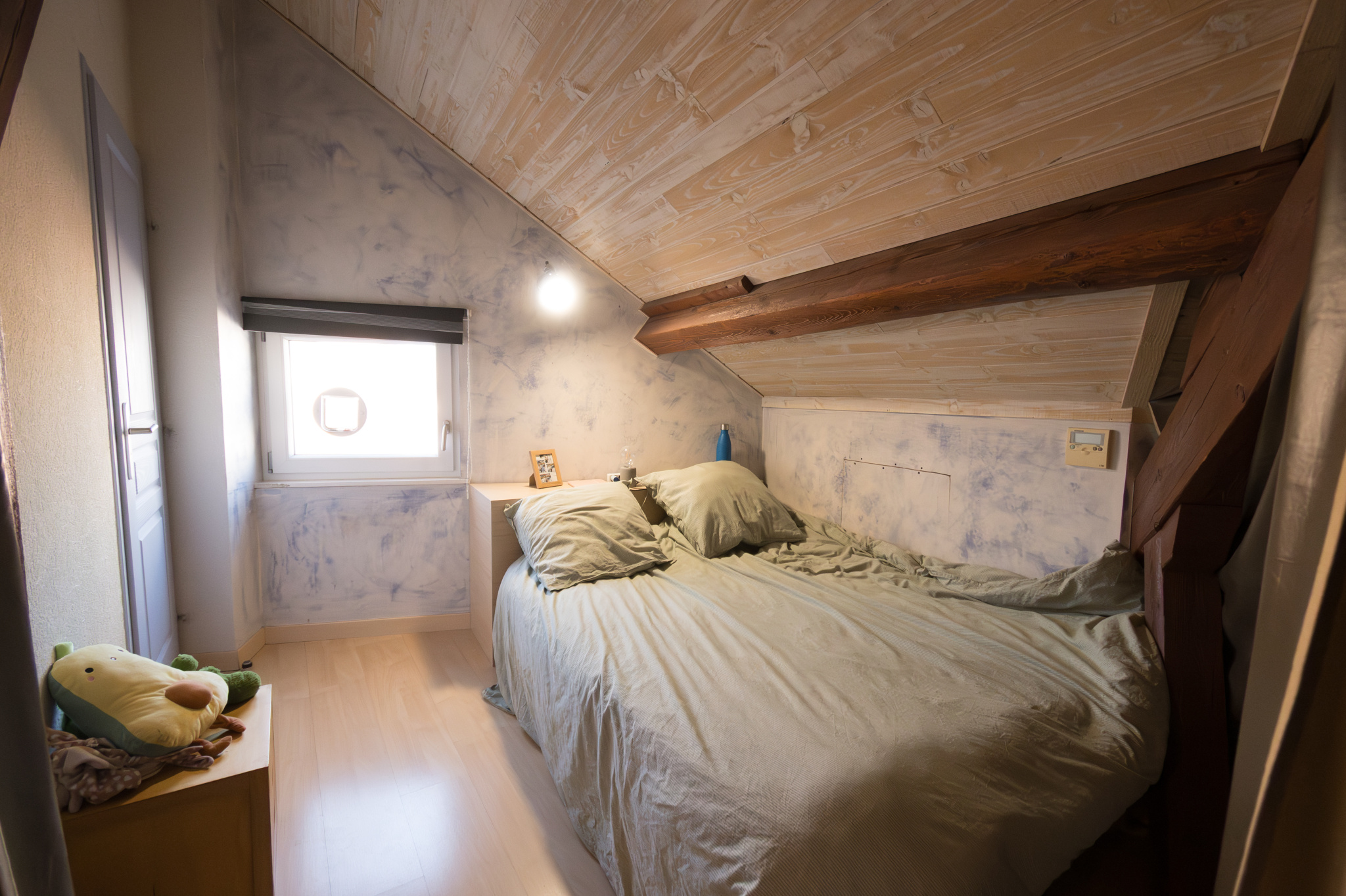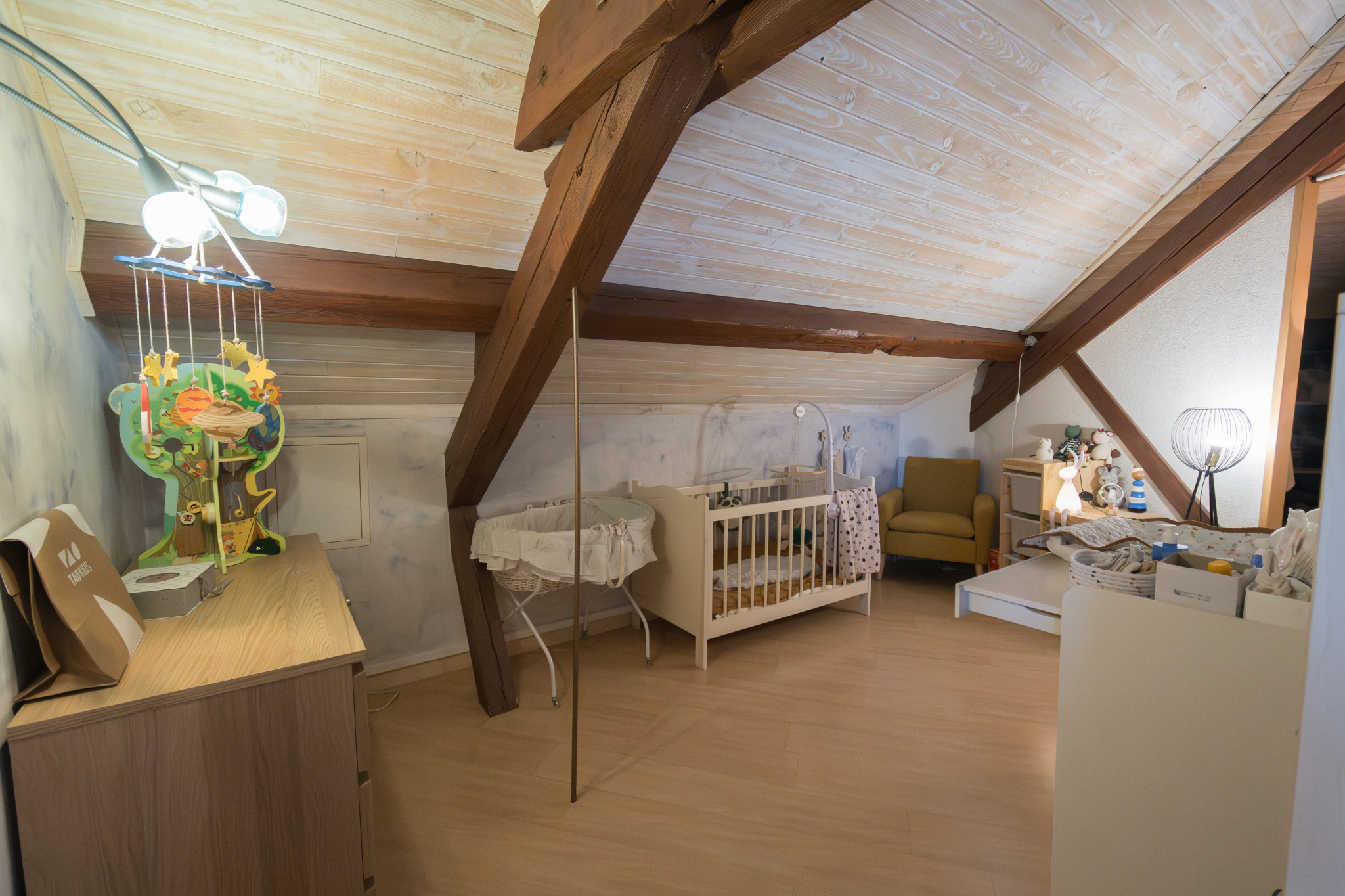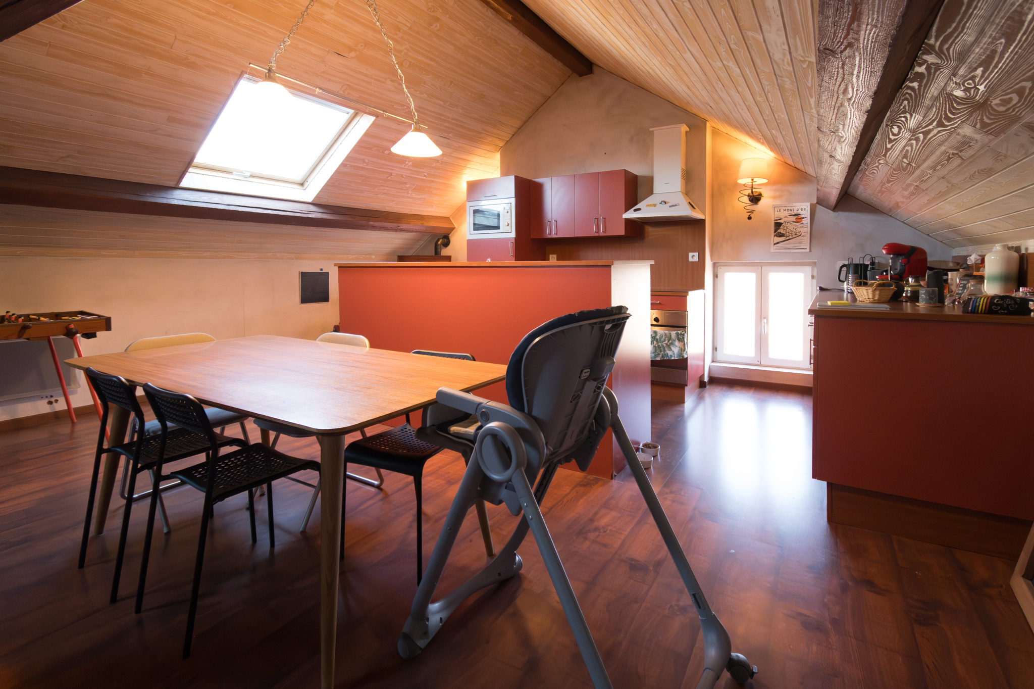 PONTARLIER - CENTRE VILLE : Appartement atypique de type 2 de 68.4m2 dans une petite copropriété calme rénové en 2005. L'appartement se compose d'une entrée, une vaste cuisine ouverte sur séjour de 34m2, une chambre, wc avec buanderie, une salle de bains et une cave. Poêle à granulé.