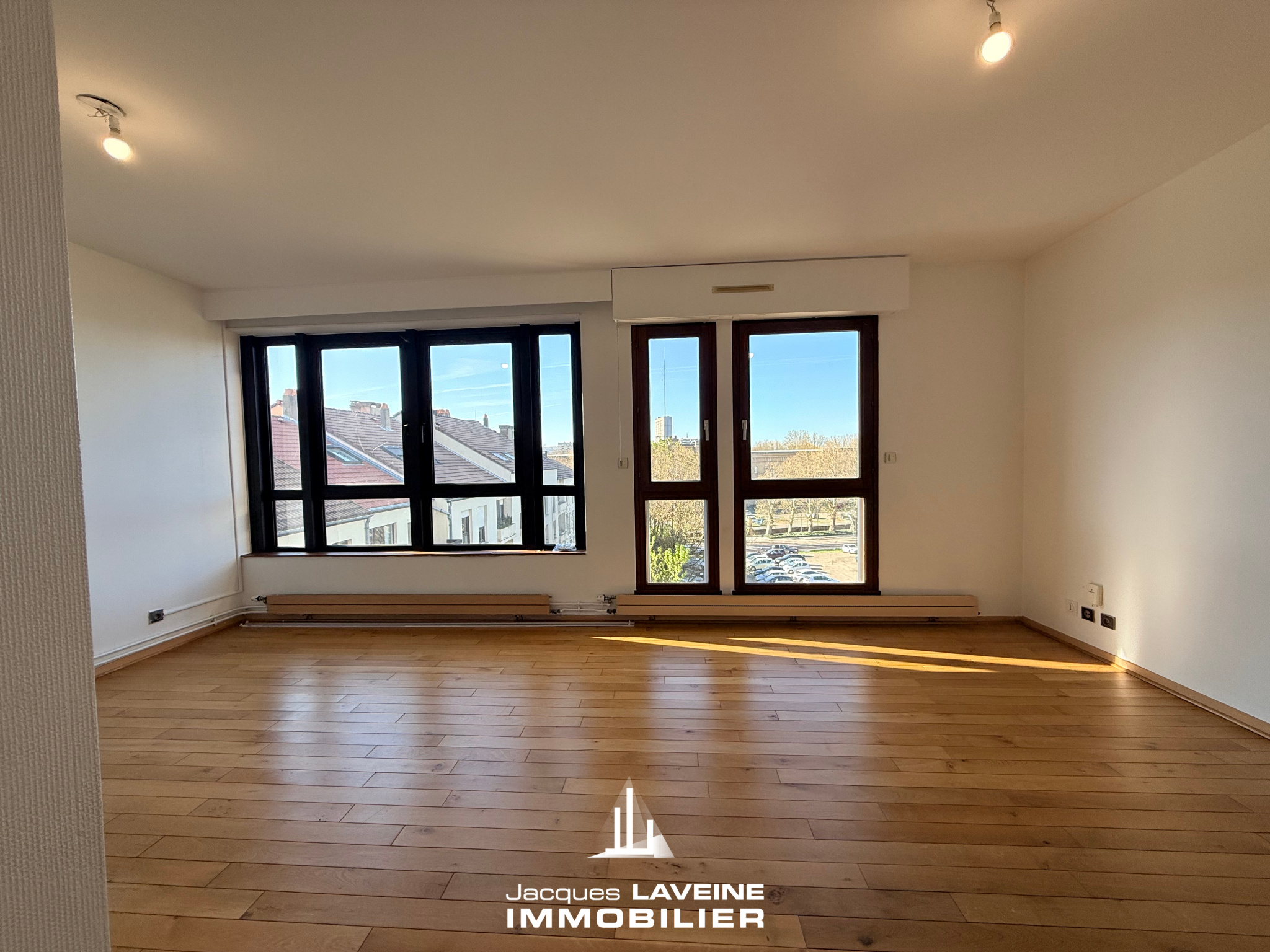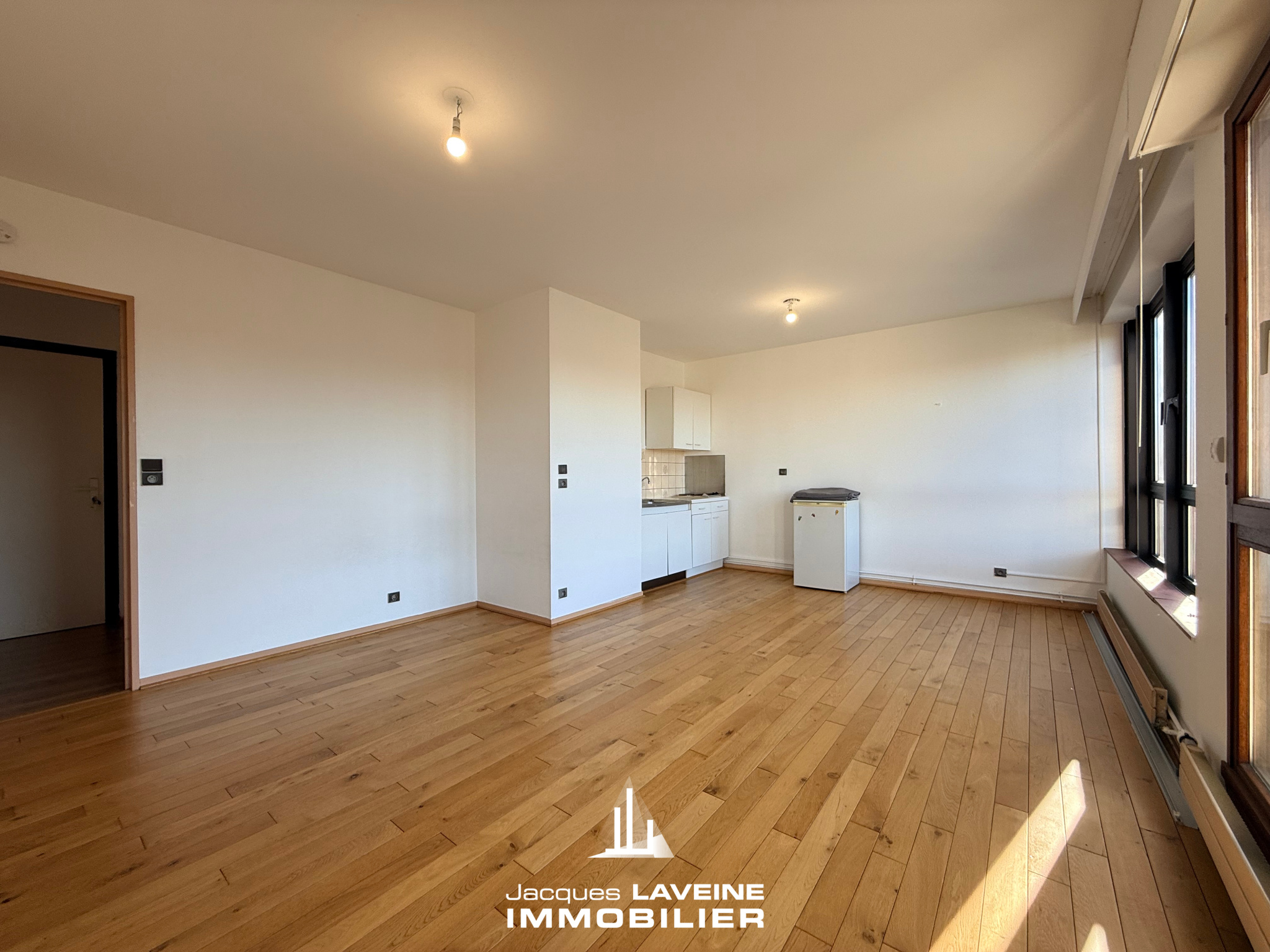 EXCLUSIVITÉ JLI! Proche Hôtel de Région, dans résidence de standing, au 5ième étage avec ascenseur, bel appartement comprenant une entrée avec placards, une pièce de vie avec coin cuisine aménagée, une salle de bains-wc. Chauffage urbain, volets motorisés, vue dégagée. Au sous-sol sécurisé, un emplacement de parking privatif. Idéal première acquisition ou investissement locatif. A SAISIR!