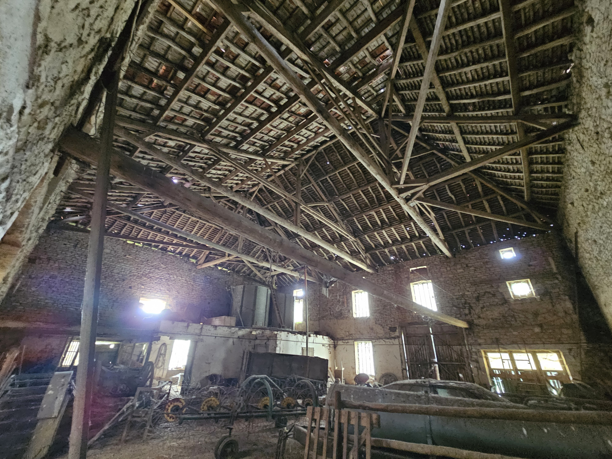 Couverture de la bâtisse à reprendre avec charpente en bon état. Toiture du hangar refaite en 2000 (fibro-ciment).