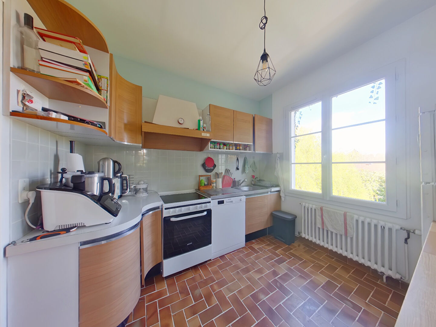 L'accès de plain-pied s'ouvre sur un grand hall d'entrée desservant un salon-séjour lumineux avec insert, ainsi qu'une cuisine aménagée. La partie nuit comprend deux chambres indépendantes avec un accès et